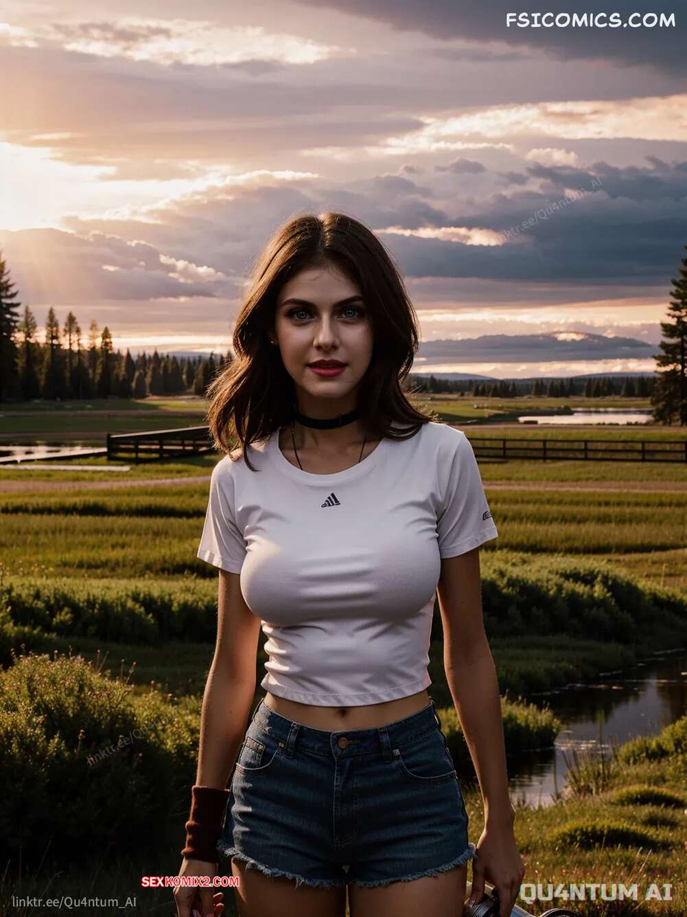 Порно комикс Alexandra Daddario. Yellowstone Trip. QuantumAI Сборник ИИ артов с горячей брюнеткой Александрой Даддарио. Девушка выбирает сексуальные наряды, чтобы показать во всей красе свои большие сиськи и сочную попку.