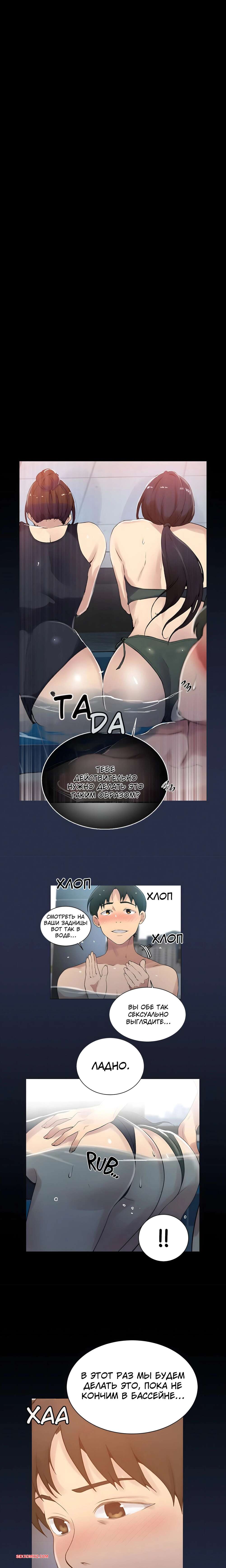 Порно комикс Тайное обучение. Без цензуры. Часть 157. Secret Class Две горячие брюнетки соблазняют парня в бассейне, желая потрахаться. Девушки раздвигают ножки и по очереди принимают в себя его твердый член, получая невероятное удовольствие.