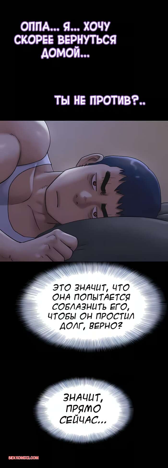 Порно комикс Соын. Часть 85 и 86 и 87. so eun Горячая брюнетка ходит по дому в одних труских и парень устал сдерживать свою похоть. Он уложил красотку в кровать и снял с нее трусики, после чего стал трахать ее ротик.