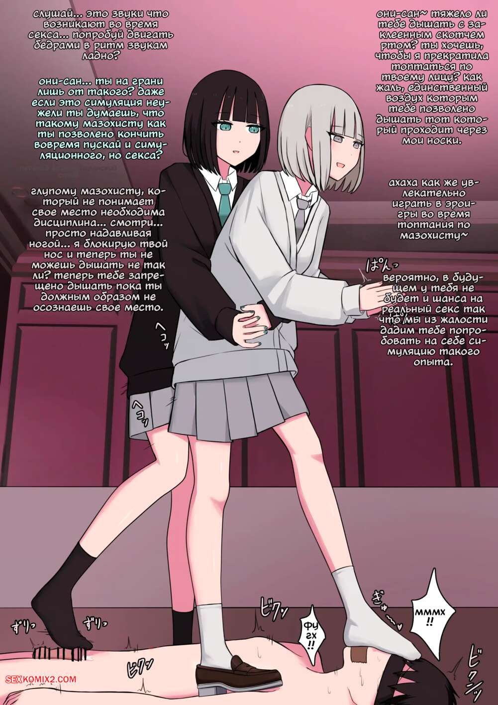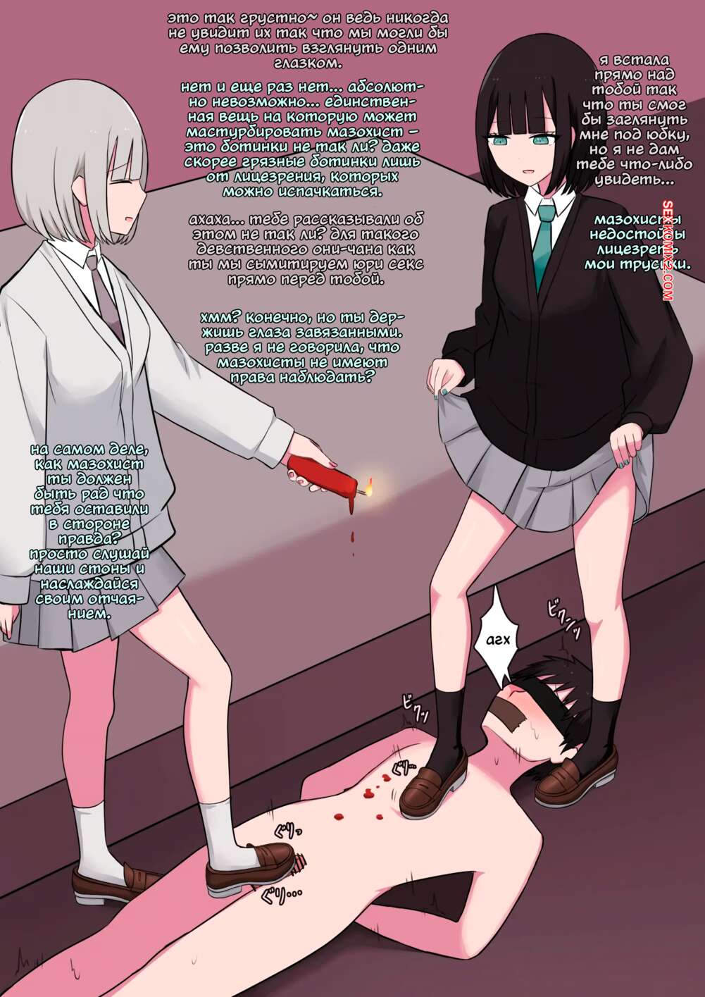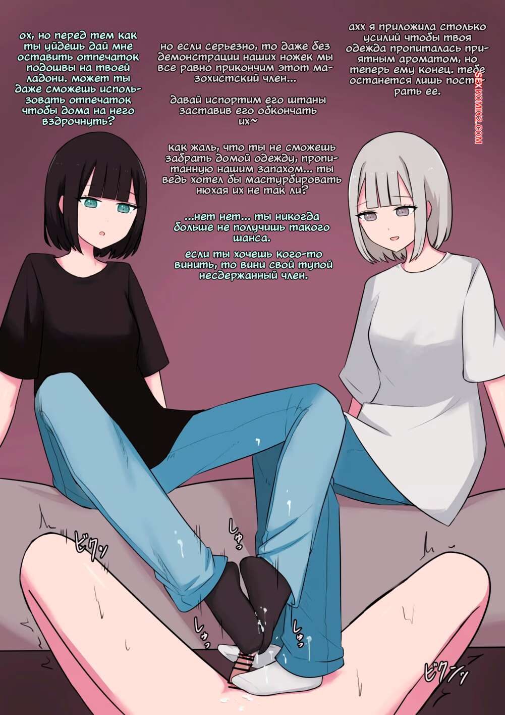 Порно комикс Демон и демон для мазохиста. Kaoinshou Zero Две похотливые красотки решили развлечься с беспмощным парнем. Они раздели его и связали, после чего стали играться ножками с его членом, удовлетворяя свои фантазии.
