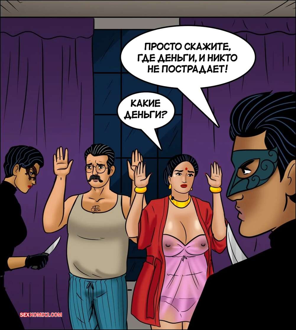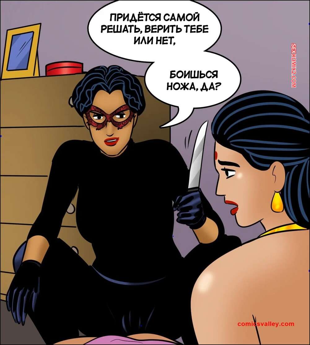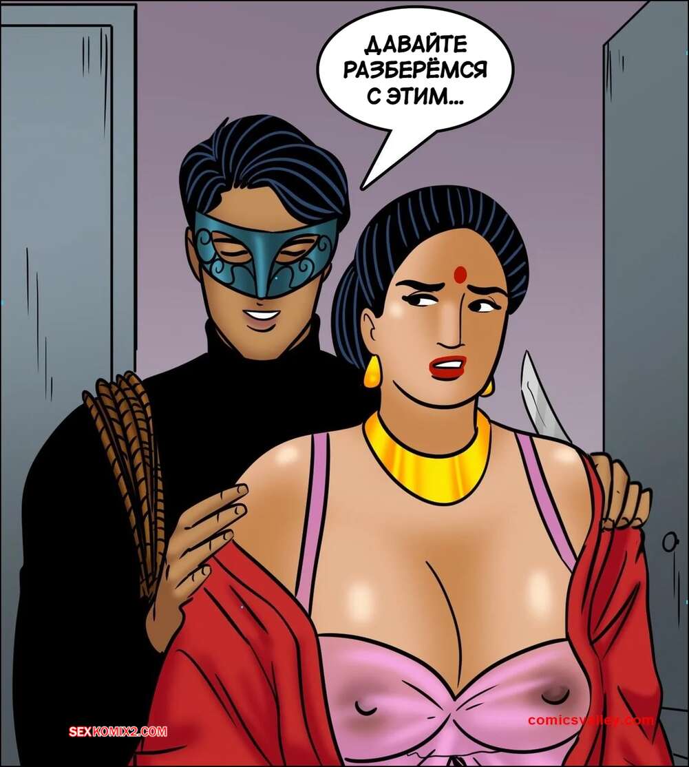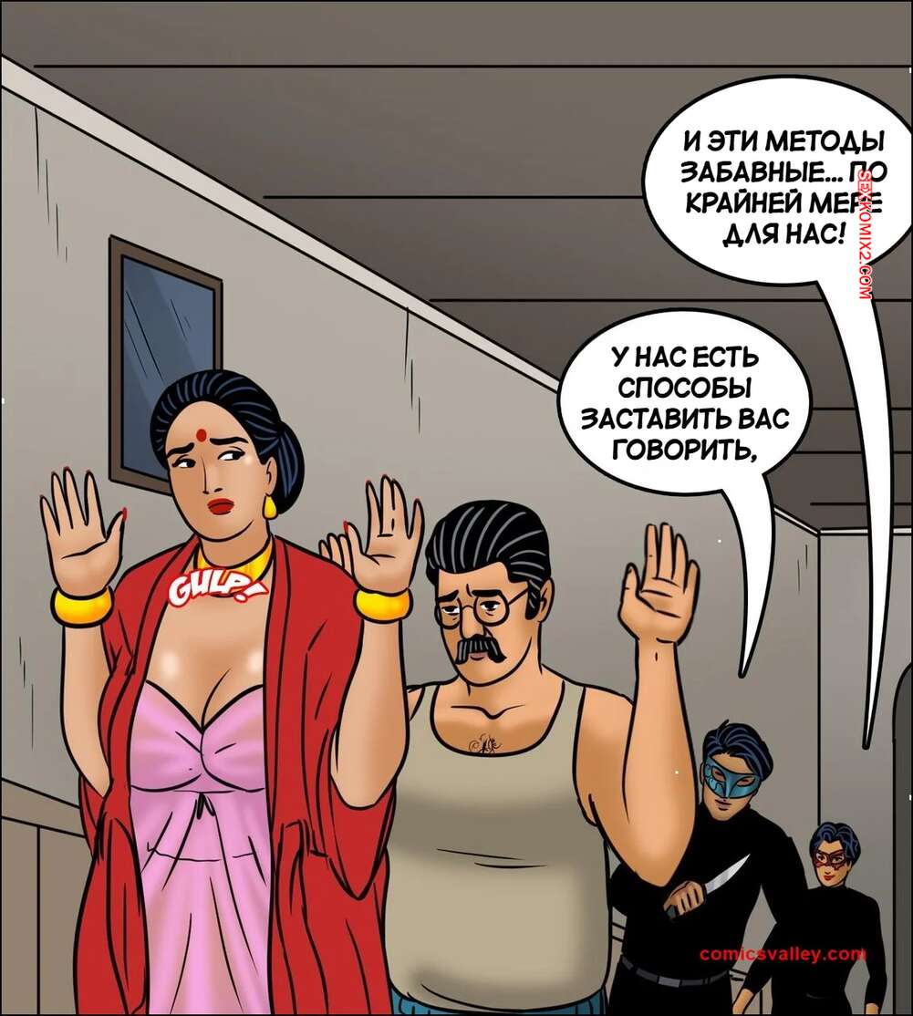 Порно комикс Веламма. Часть 112. Velamma. Velamma В дом Веламмы ворвались грабители и связали ее мужа, а сами уединились с аппетитной милфой. Парень достал член и сунул ей член в ротик, после чего к ним присоединилась его напарница, чтобы устроить групповуху.