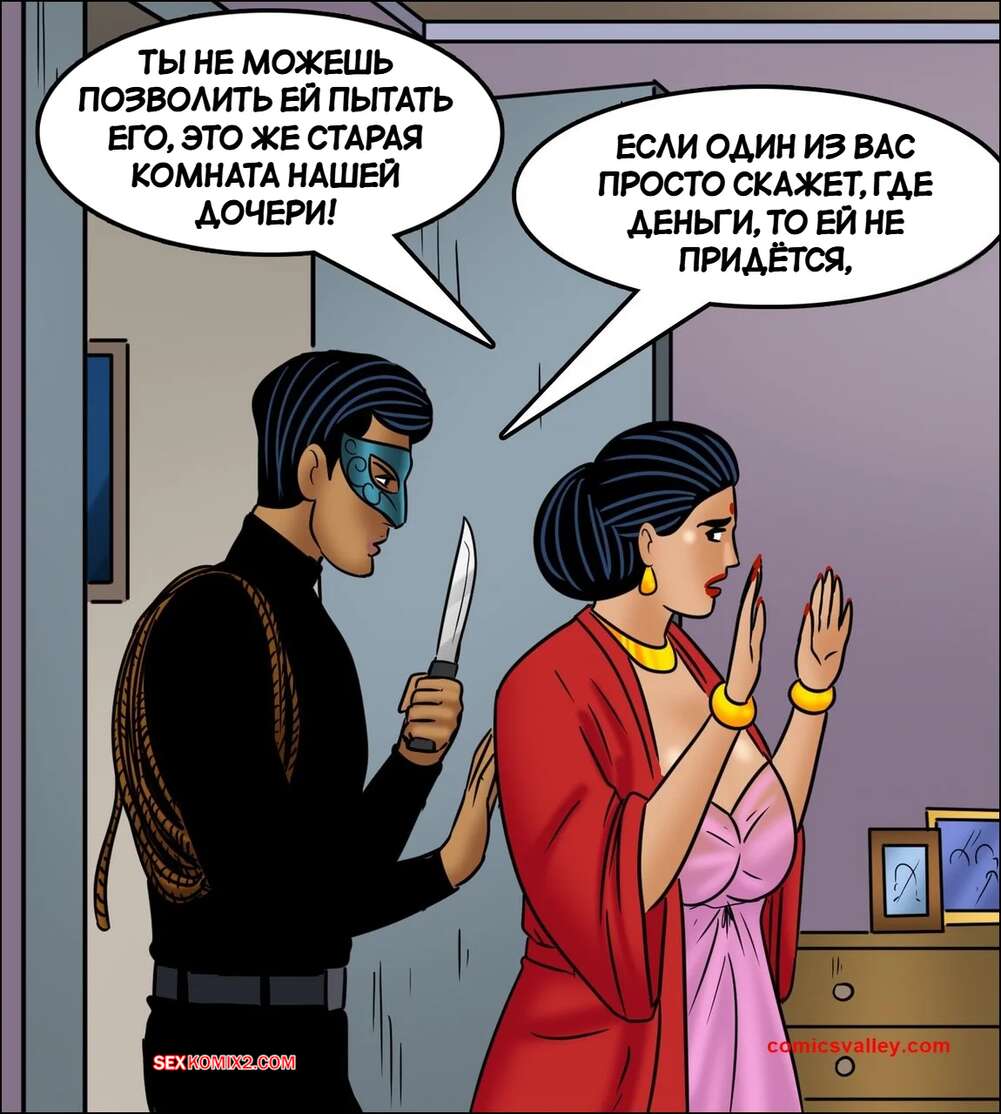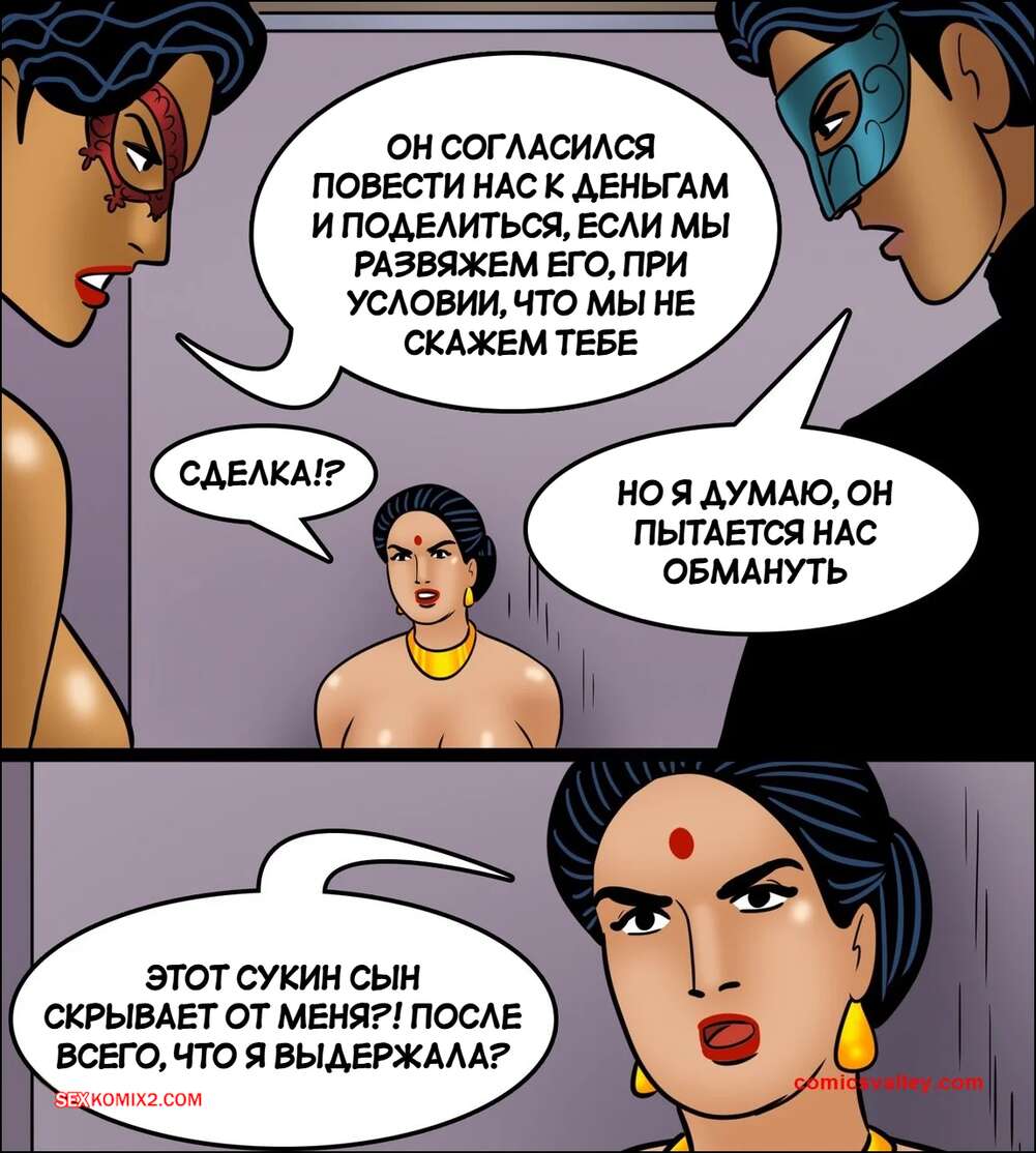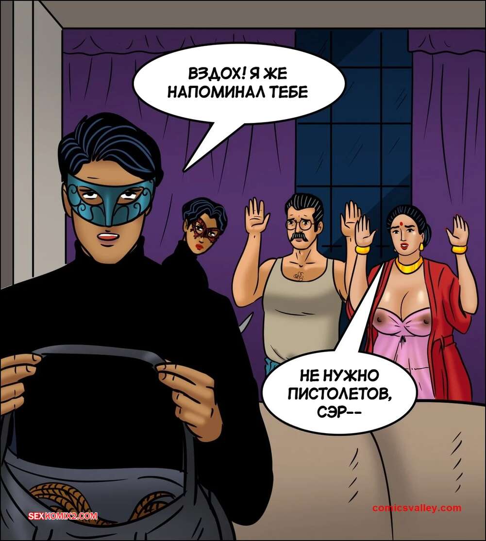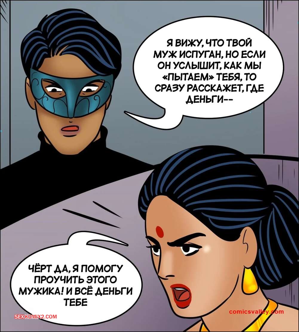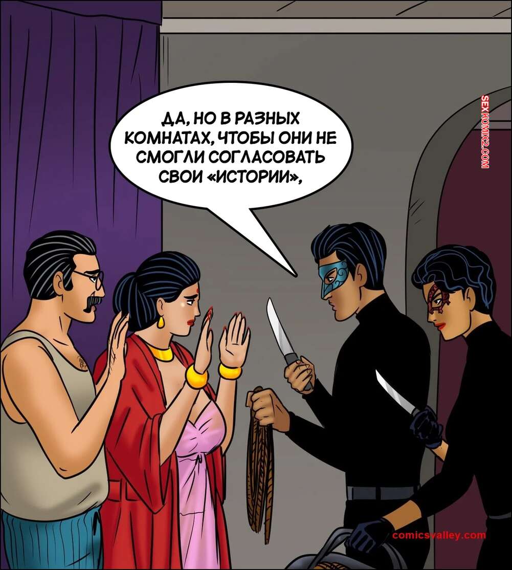 Порно комикс Веламма. Часть 112. Velamma. Velamma В дом Веламмы ворвались грабители и связали ее мужа, а сами уединились с аппетитной милфой. Парень достал член и сунул ей член в ротик, после чего к ним присоединилась его напарница, чтобы устроить групповуху.