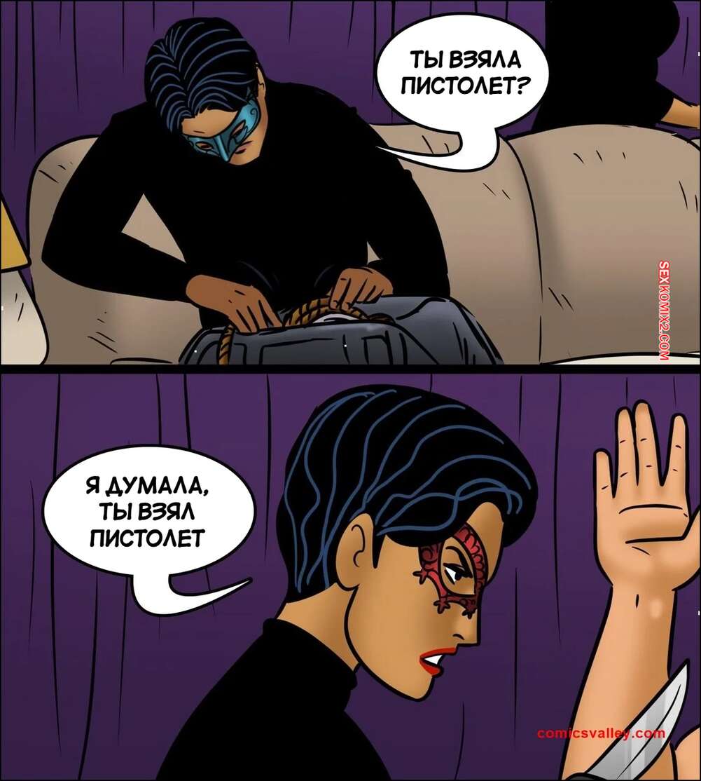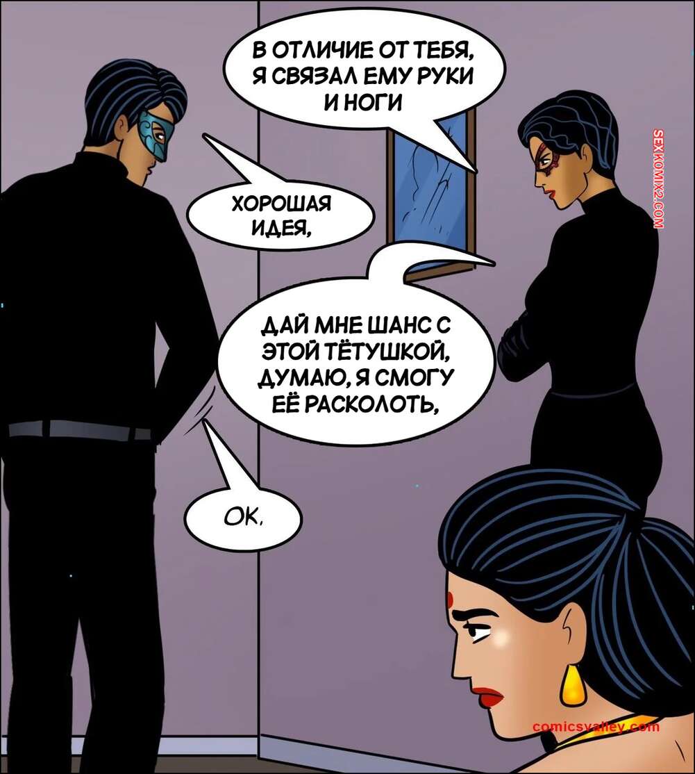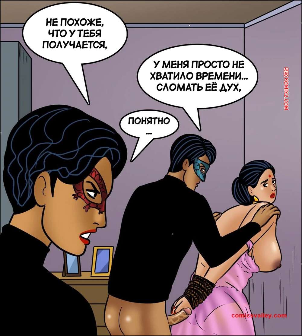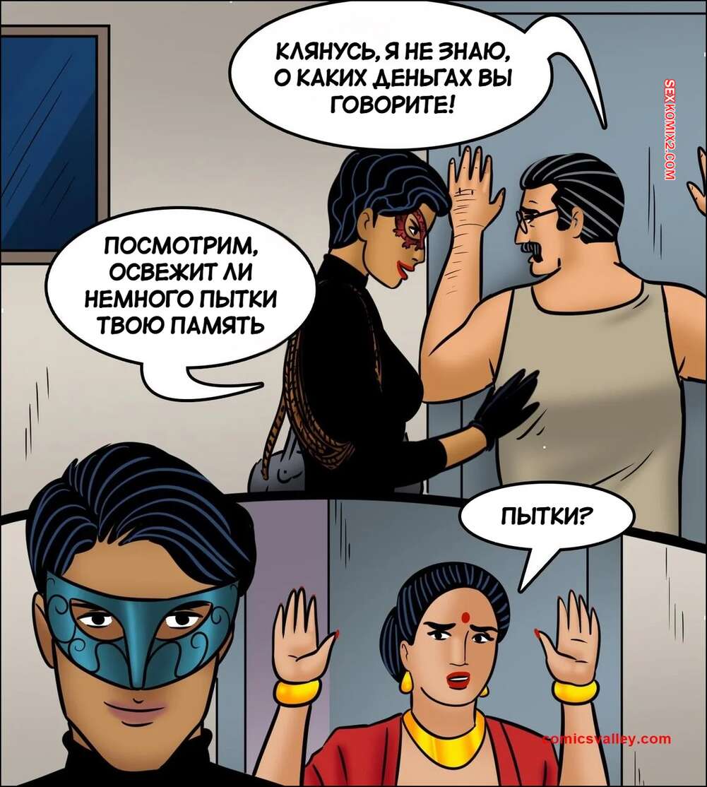 Порно комикс Веламма. Часть 112. Velamma. Velamma В дом Веламмы ворвались грабители и связали ее мужа, а сами уединились с аппетитной милфой. Парень достал член и сунул ей член в ротик, после чего к ним присоединилась его напарница, чтобы устроить групповуху.