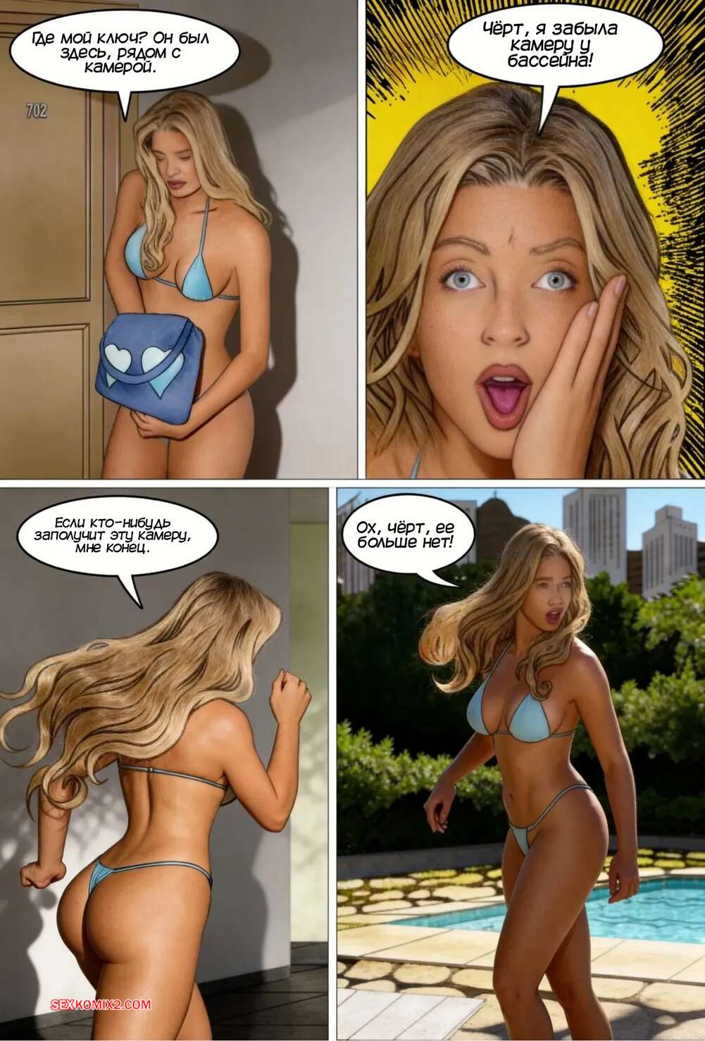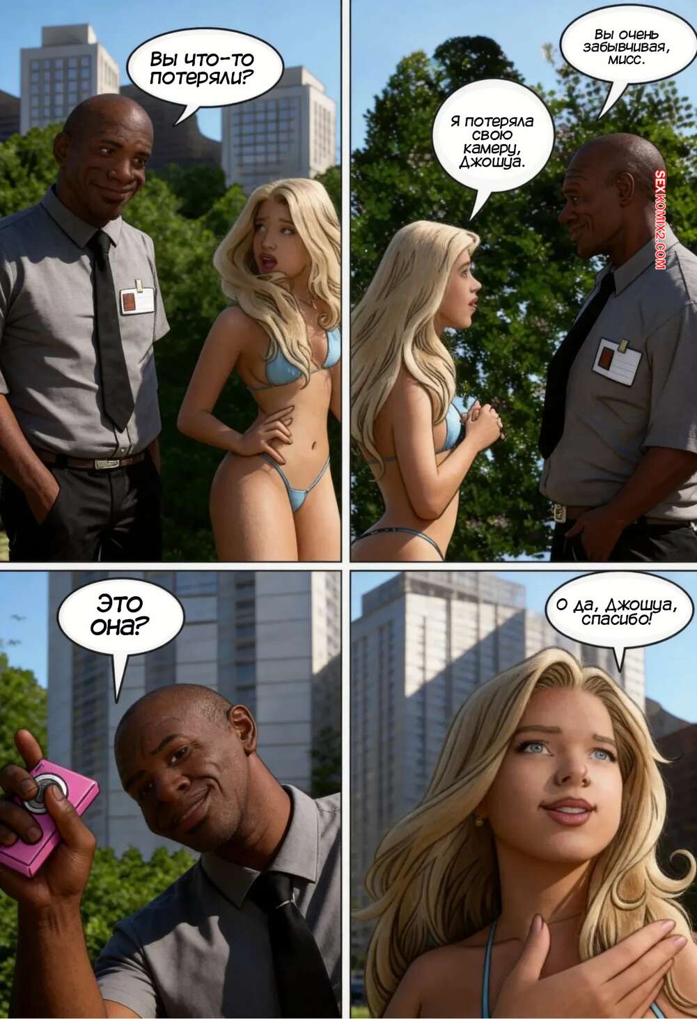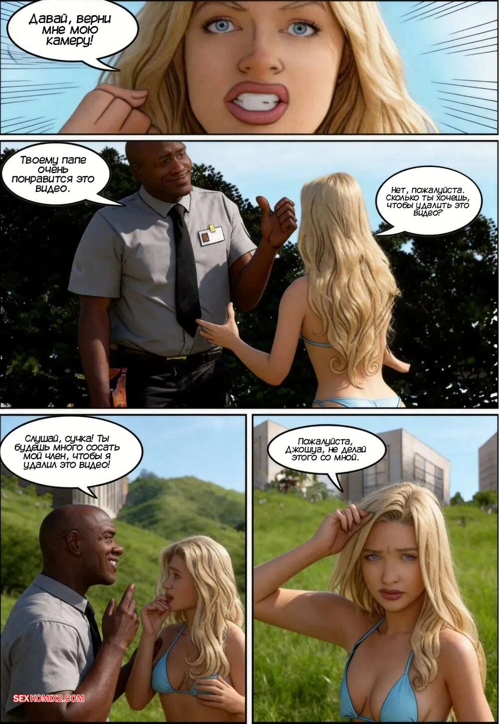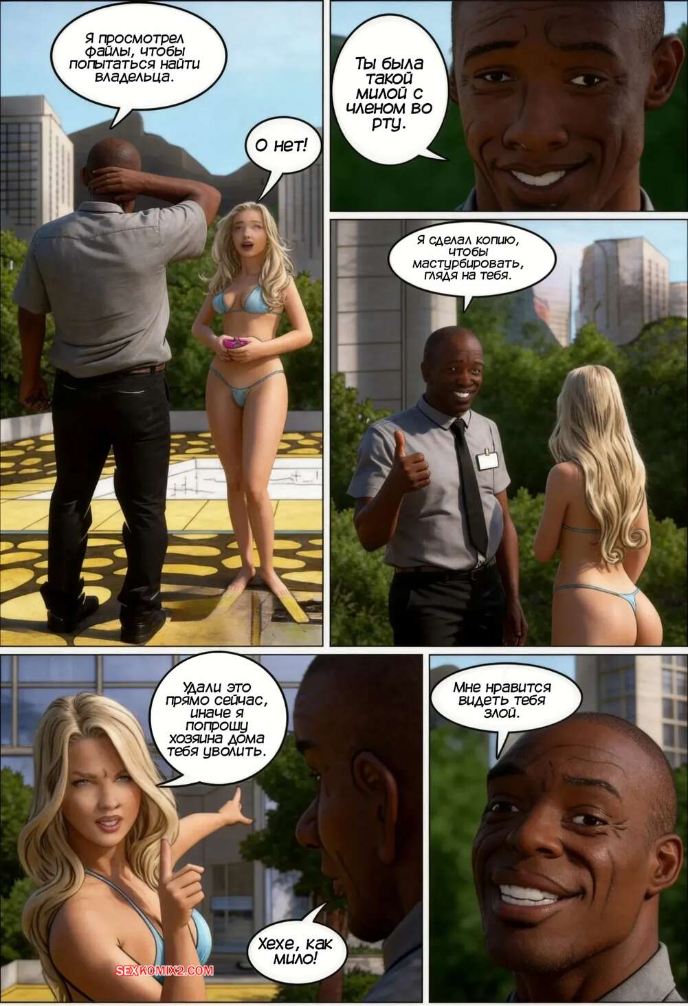Порно комикс Богатая девушка и швейцар. Часть 1. A Patricinha e o Porteiro Красотка Фернанда забыла у бассейна на камеру, где было видео ее отсоса своему дружку. Камеру нашел швейар Джошуа, который стал шантажировать девушку, чтобы она ему тоже остсосала.