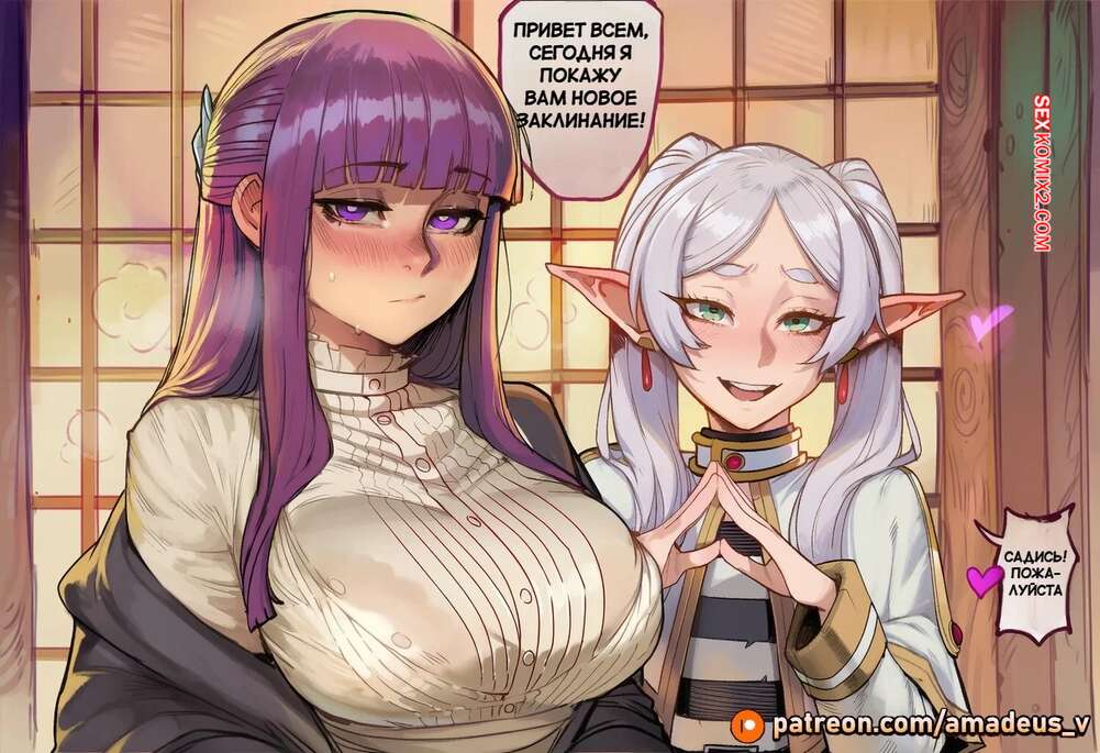 Порно комикс Sousou no Frieren. Новый вид магии. Fern x Frieren. A New Kind Of Magic. Amadeus V. У Ферн волшебным образом появился член, что очень возбудило Фрирен. Блондиночка встала на колени перед подругой и отсосала ее член, после чего раздвинула ножки и дала себя выебать в пизду и задницу.