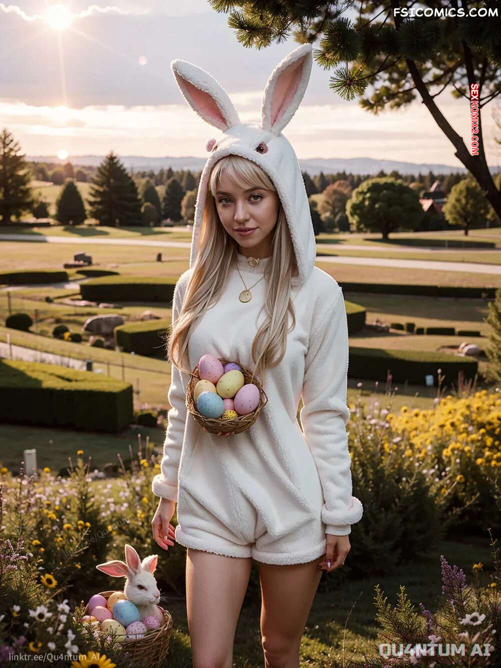 Порно комикс Sydney Sweeney. Easter Egg. QuantumAI Сборник ИИ артов с горячей блондинкой Сидни Суини в образе пасхального кролика. Девушка надевает сексуальные наряды, демонстрируя во всей красе свои аппетитные формы.