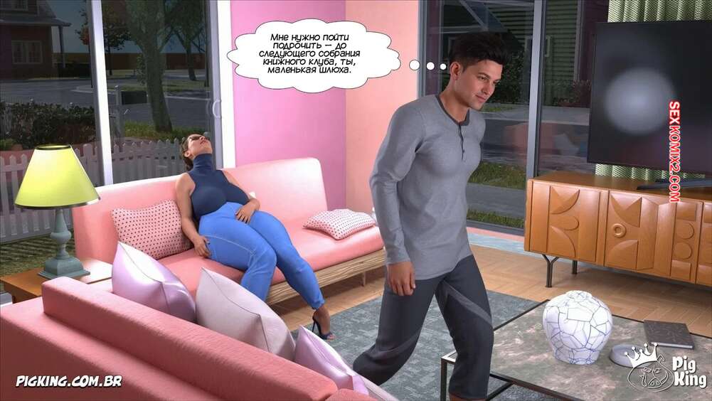 Порно комикс Что делать. Часть 1. What to do. PigKing Горячая милфа по вечерам уходит в книжный клуб, когда у ее мужа ночные смены. Ее сын чтото заподозрил и решил проследить за мамочкой, чтобы узнать чем она на самом деле занимается.