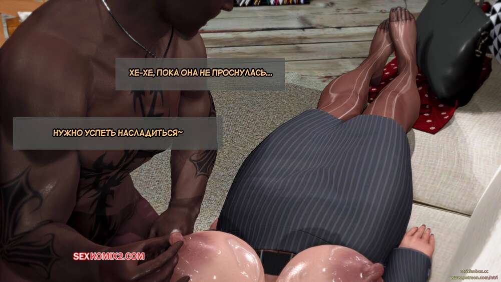 Порно комикс Падение мамы репетитора. Часть 2. The Fall of the Tutor Mom. ntri Горячая брюнетка уснула на диване и темнокожий парень решил воспользоваться ситуацией. Он оголил сиськи красотки и стал сосать их, после чего порвал ей колготки и вставил член в пизду девушки.
