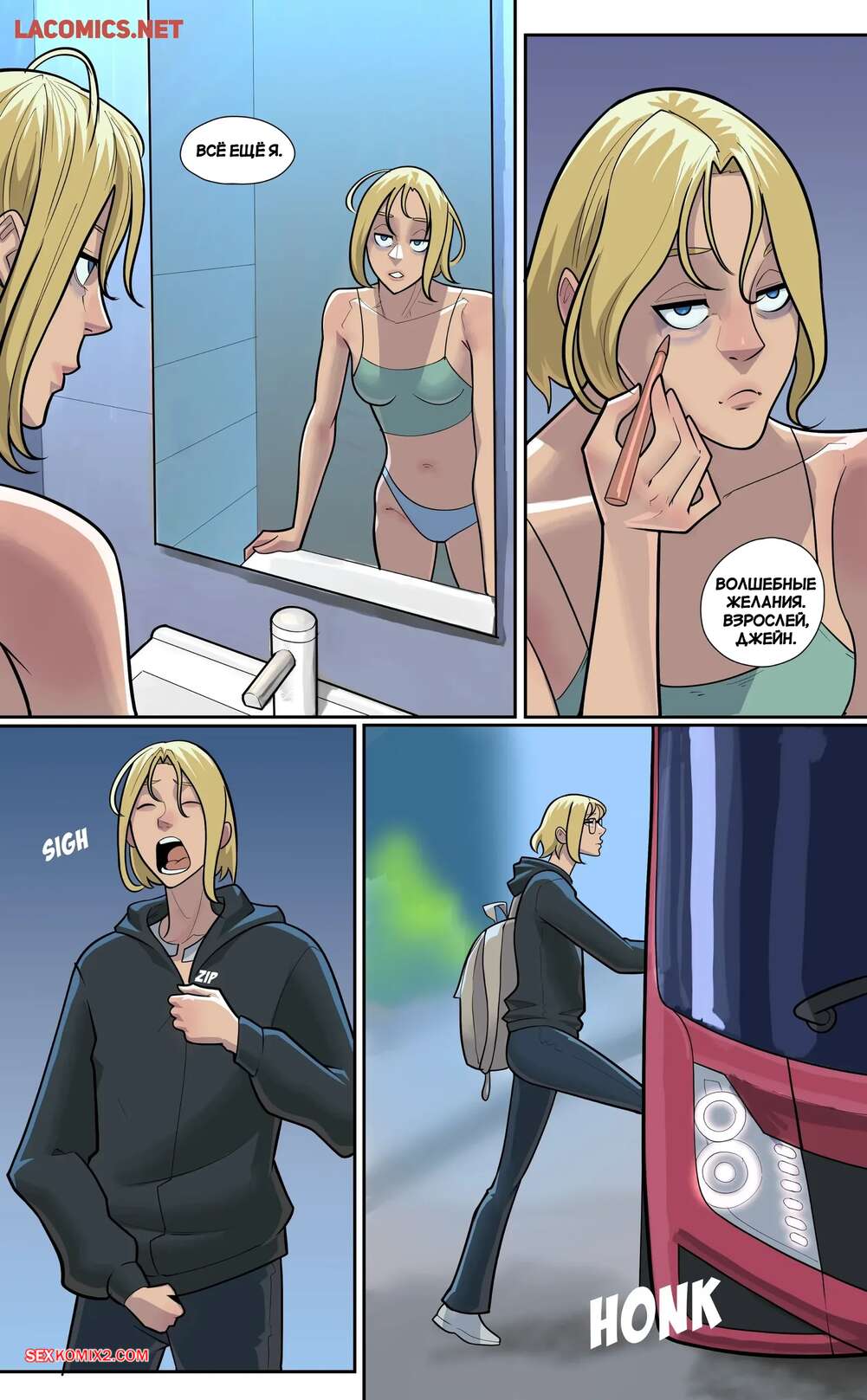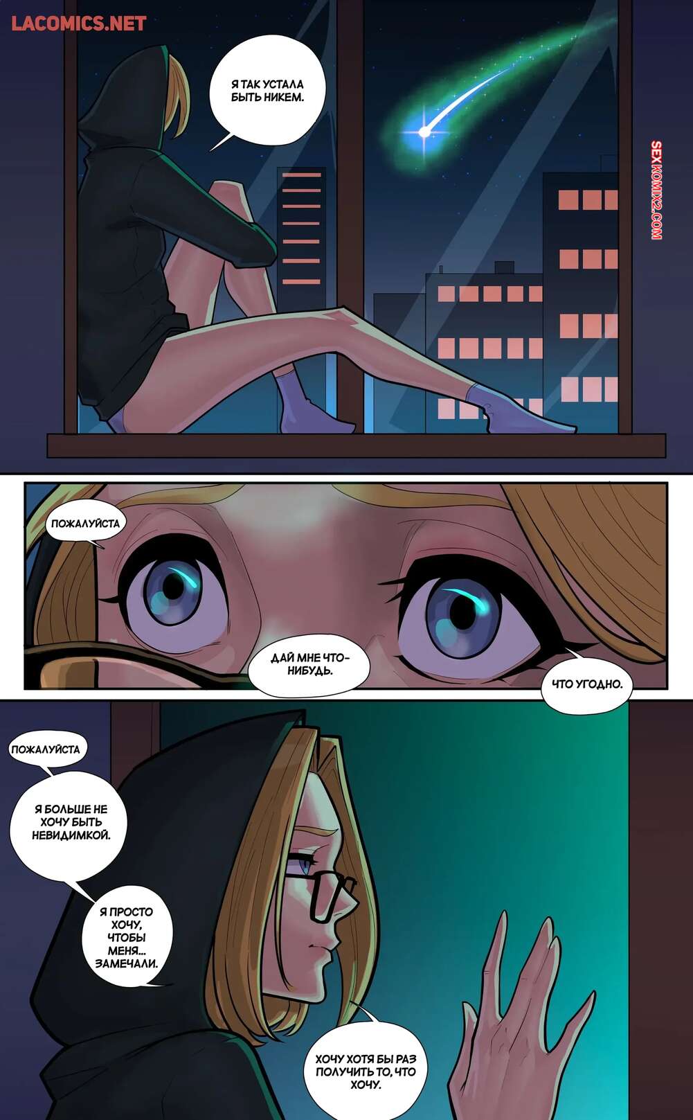 Порно комикс Наивная. BloomBeauty. Wishfull. Девушка увидела падающую звезду и загадала желание перестать быть наивной. Тело девушки изменилось и она стала сексуальной красоткой. Девушка вернулась после работы возбужденной и стала ласкать свою пизденку, получая невероятное удовольствие.