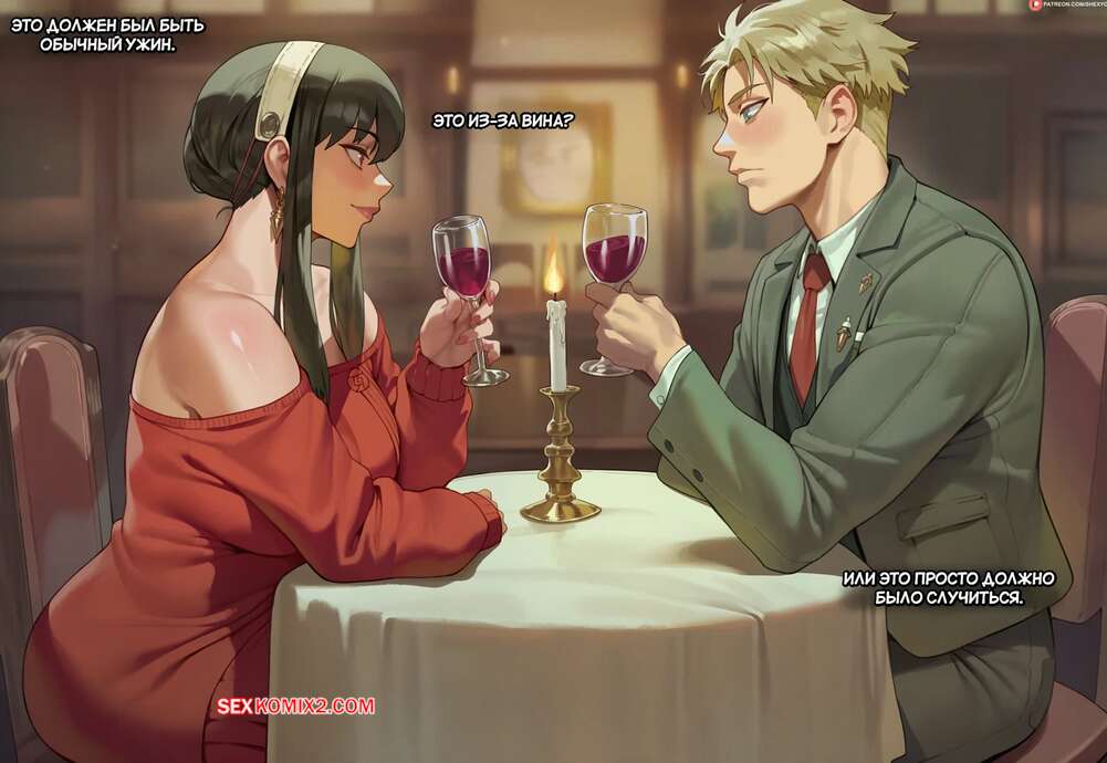 Порно комикс Spy x Family. Вечерний ужин. Dinner Night. Shexyo. Йор отправилась на романтический ужин со своим дружком, после чего они решили продолжить вечер вместе. Красотка разделась и отсосала хуй своего дружка, после чего раздвинула ножки и дала себя выебать.