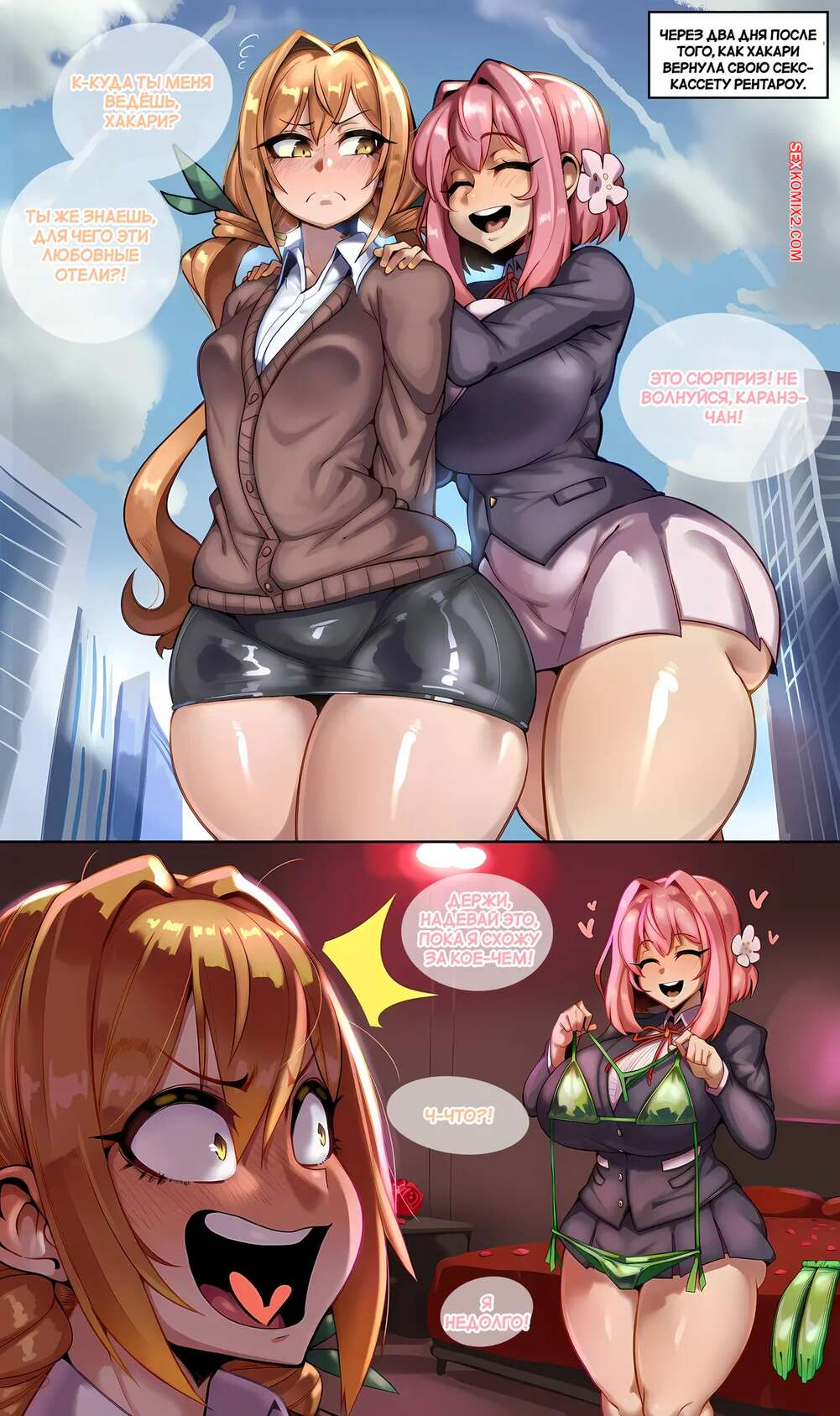 Порно комикс 99 подруг. 99 Girlfriends. Donbe. Возбужденная красотка с большим членом навещает своих подруг, чтобы снять напряжение. Она ставит девушек на колени и дает отсосать свой большой хуй, после чего как следует их трахает.