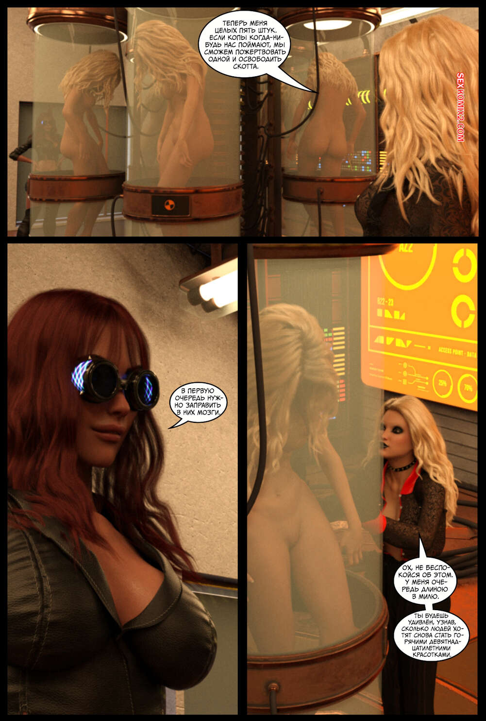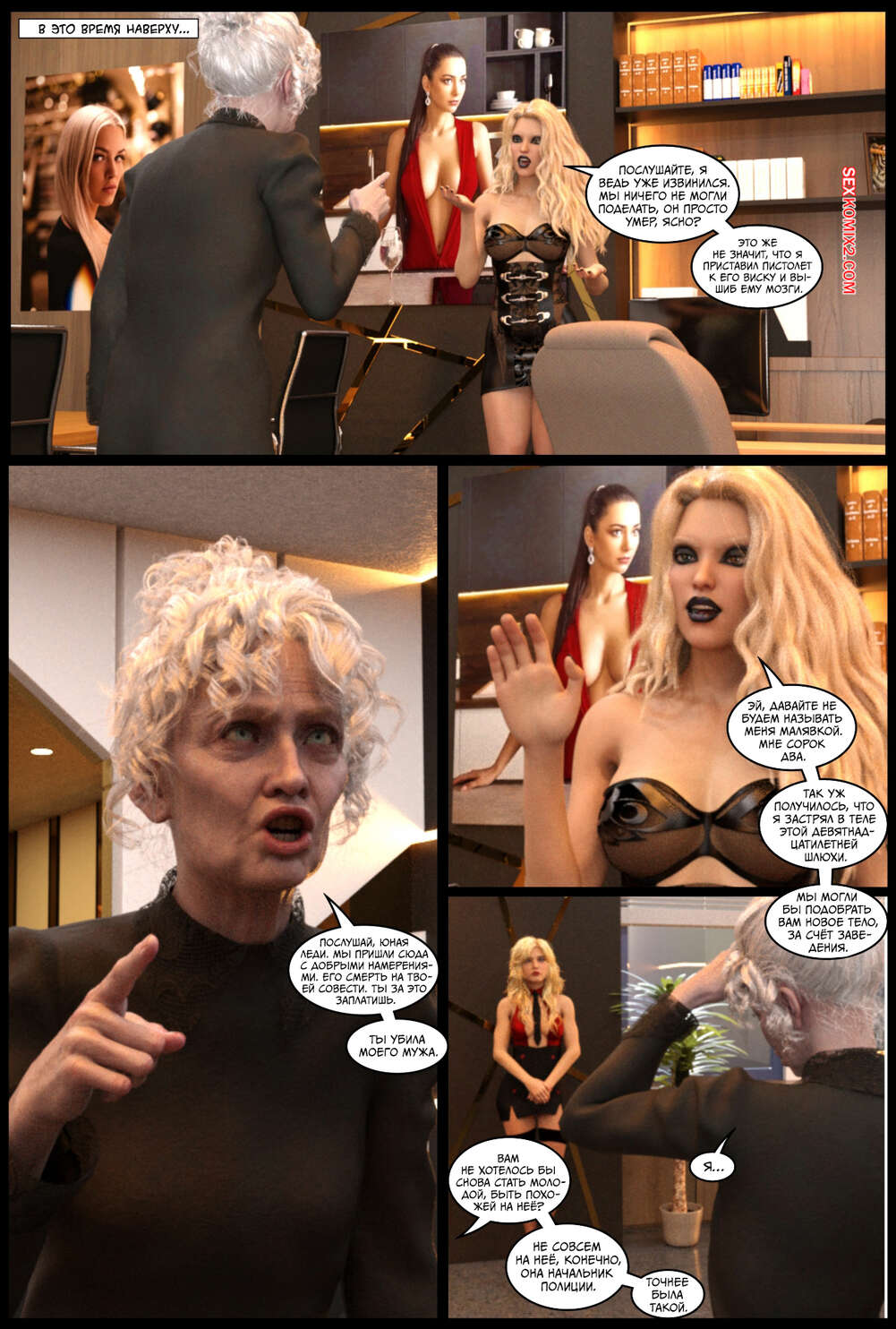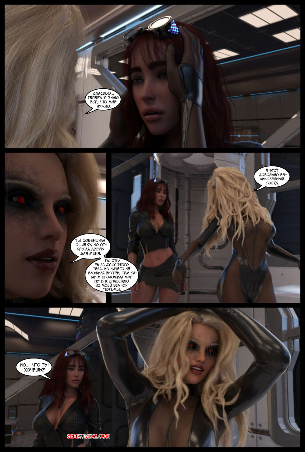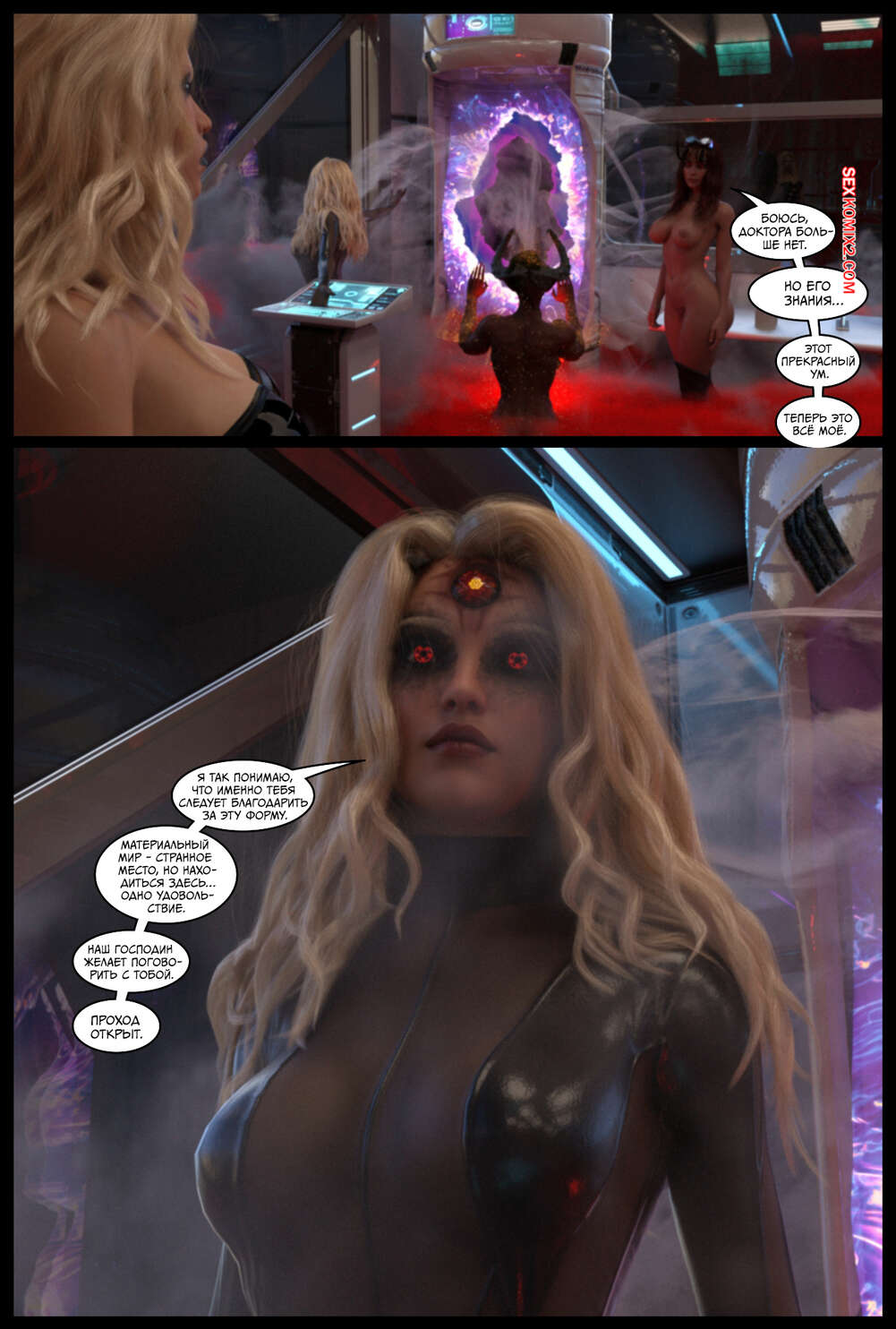 Порно комикс Поглощение. Часть 3. The Takeover. Cantraps Горячая блондинка продолжает переносить тела преступников в тела сексуальных девушек, создавая свою банду. Красотка загадочным образом оказывается в другом мире, откуда возвращается в демоническом образе и с членом.