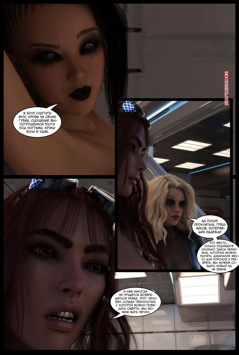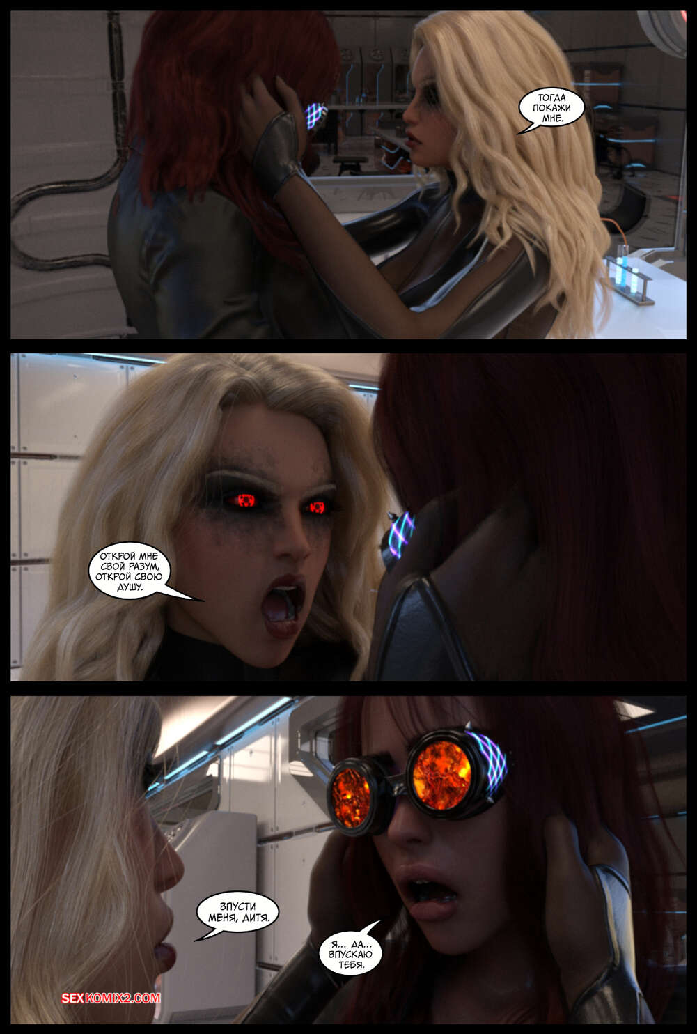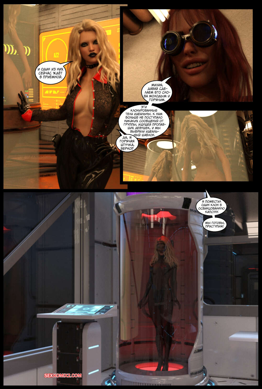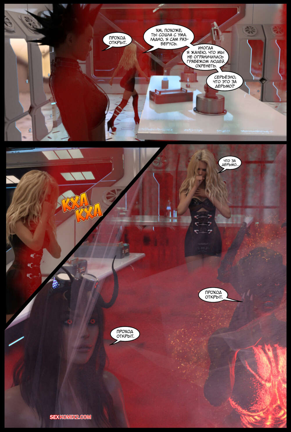 Порно комикс Поглощение. Часть 3. The Takeover. Cantraps Горячая блондинка продолжает переносить тела преступников в тела сексуальных девушек, создавая свою банду. Красотка загадочным образом оказывается в другом мире, откуда возвращается в демоническом образе и с членом.