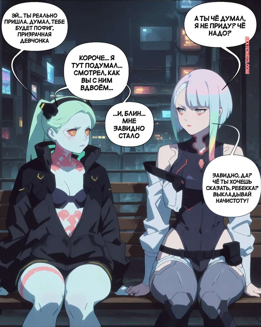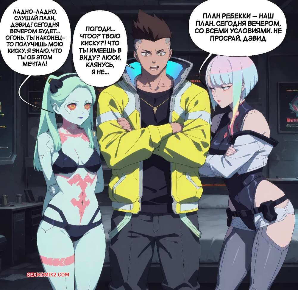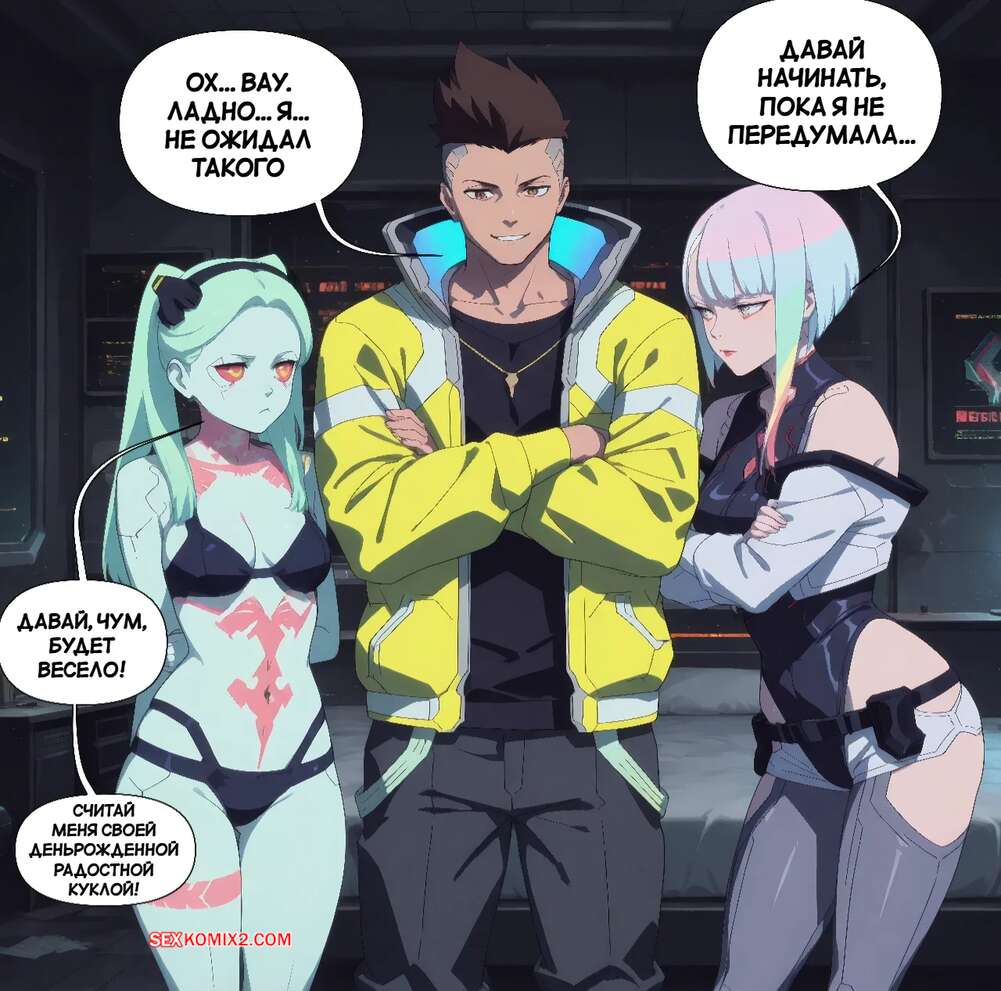 Порно комикс Cyberpunk. Только в этот раз. Just This Once. Scarlet Meow. Горячие красотки возбудились и решили повеселиться со своим дружком. Девушки разделись и вместе отсосали хуй парня, после чего раздвинули ножки и дали себя выебать.