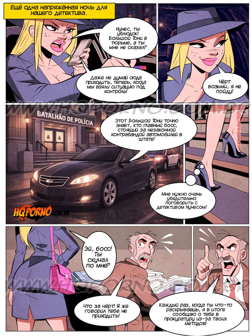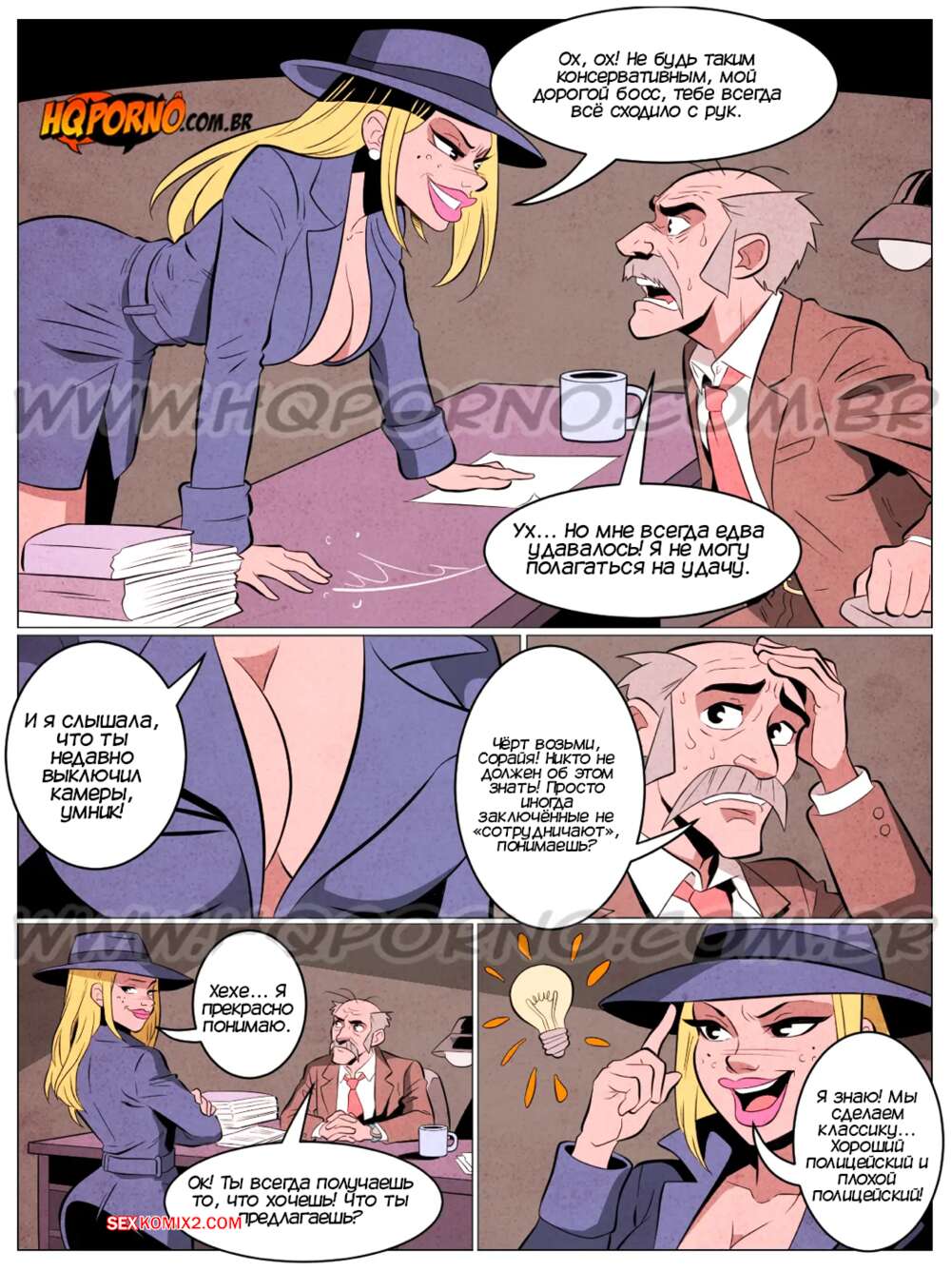 Порно комикс Сорайя бесстрашная сука. Часть 4. HQPorno Красотка Сорайя прибыла в полицейский участок, чтобы провести допрос Большого Тони. Девушка стала трахаться со своим коллегой, заставляя бандита выдать имя главаря.