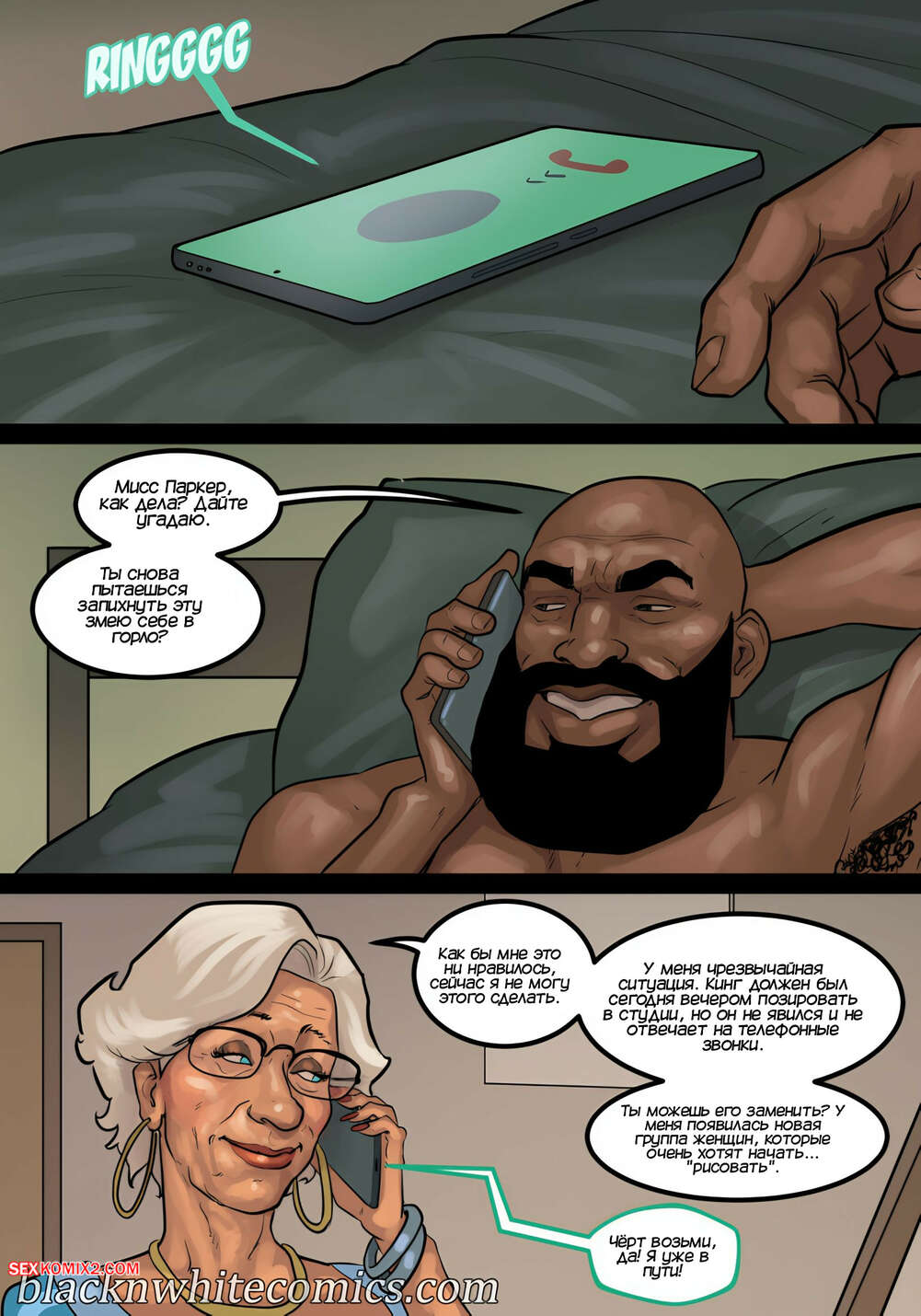 Порно комикс Урок рисования. Часть 3. Art Class. Blacknwhitecomics Темнокожий парень получил звонок на телефон от мисс Паркер. Она пригласила его попозировать для новой группы женщин. Он с удовольствием согласился, ведь может трахнуть их всех.