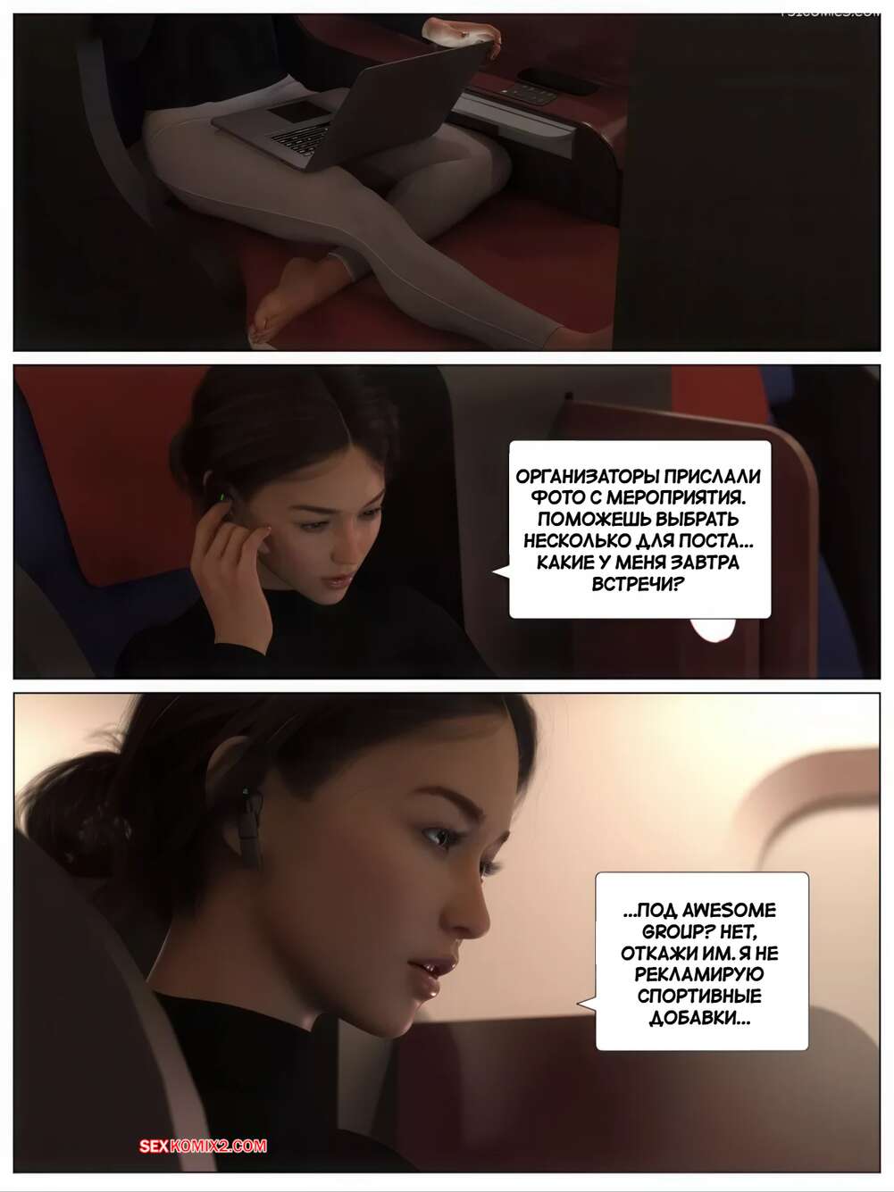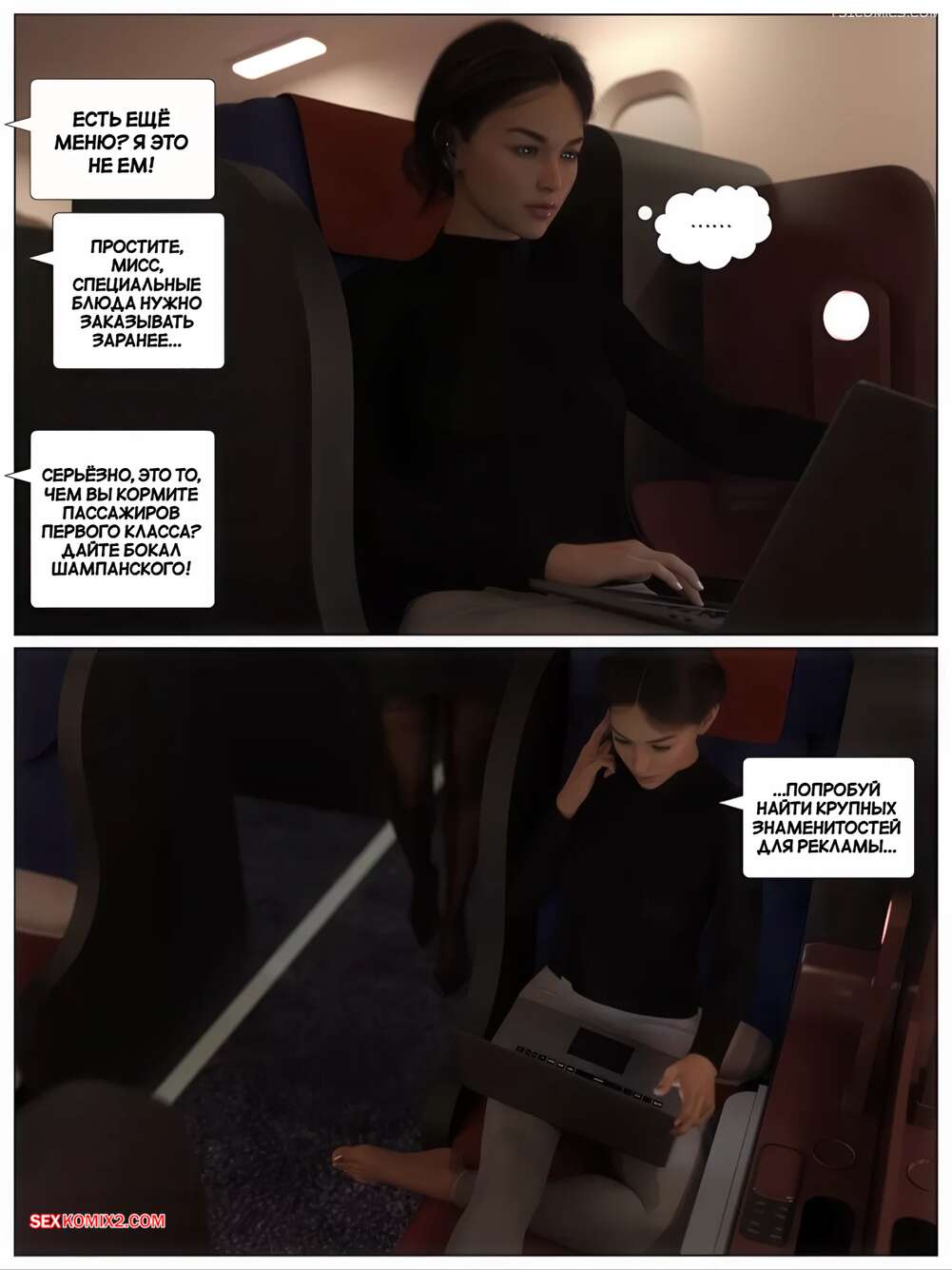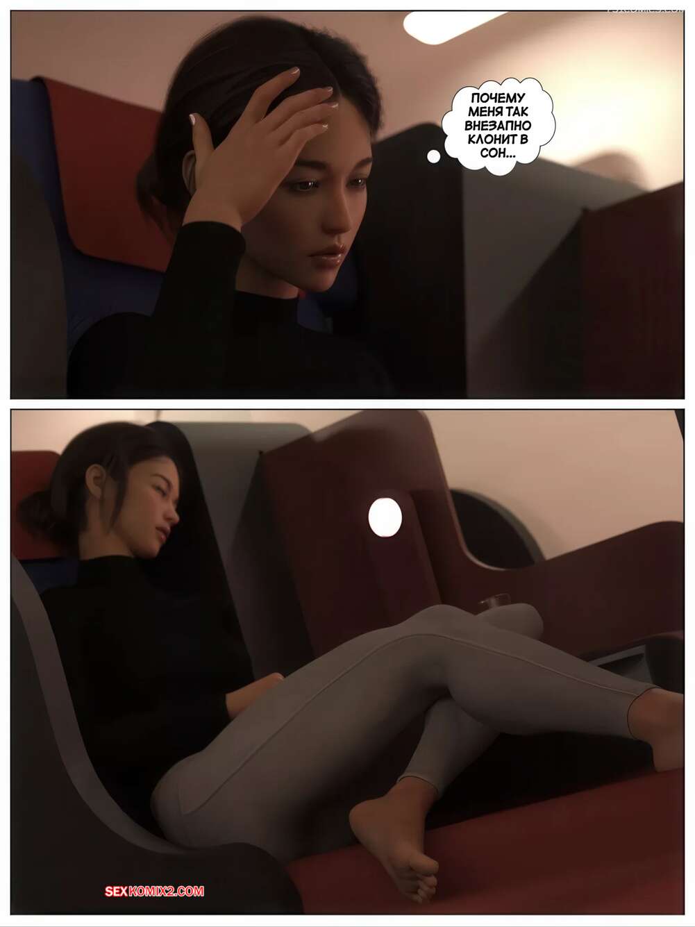 Порно комикс Нет спасения. Часть 1. No Escape. AWE SOME Ryan. Горячая брюнетка уснула в самолете и парень решил воспользоваться ситуацией. Он раздел красотку и стал лизать ее пизденку, после чего вставил в нее свой член и стал трахать.