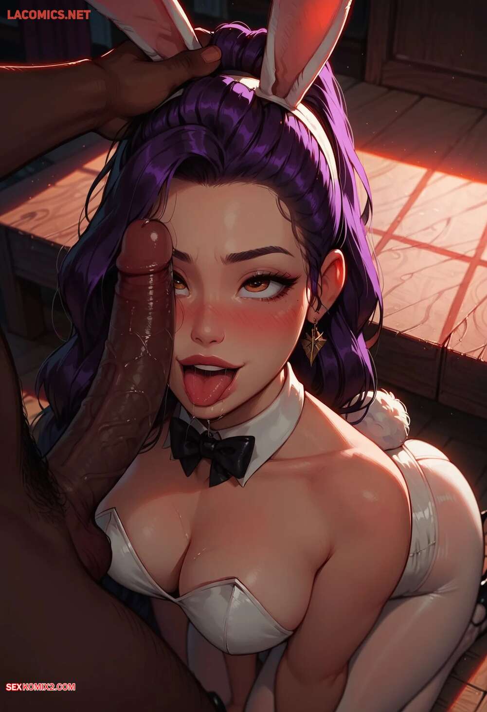 Порно комикс HUNTR X Easter Climax. Rumi. LowFireStudios Горячая брюнетка надела сексуальный наряд, желая соблазнить своего темнокожего дружка. Девушка встала на колени и отсосала его большой хуй, после чего раздвинула ножки и дала себя выебать во все дырочки.