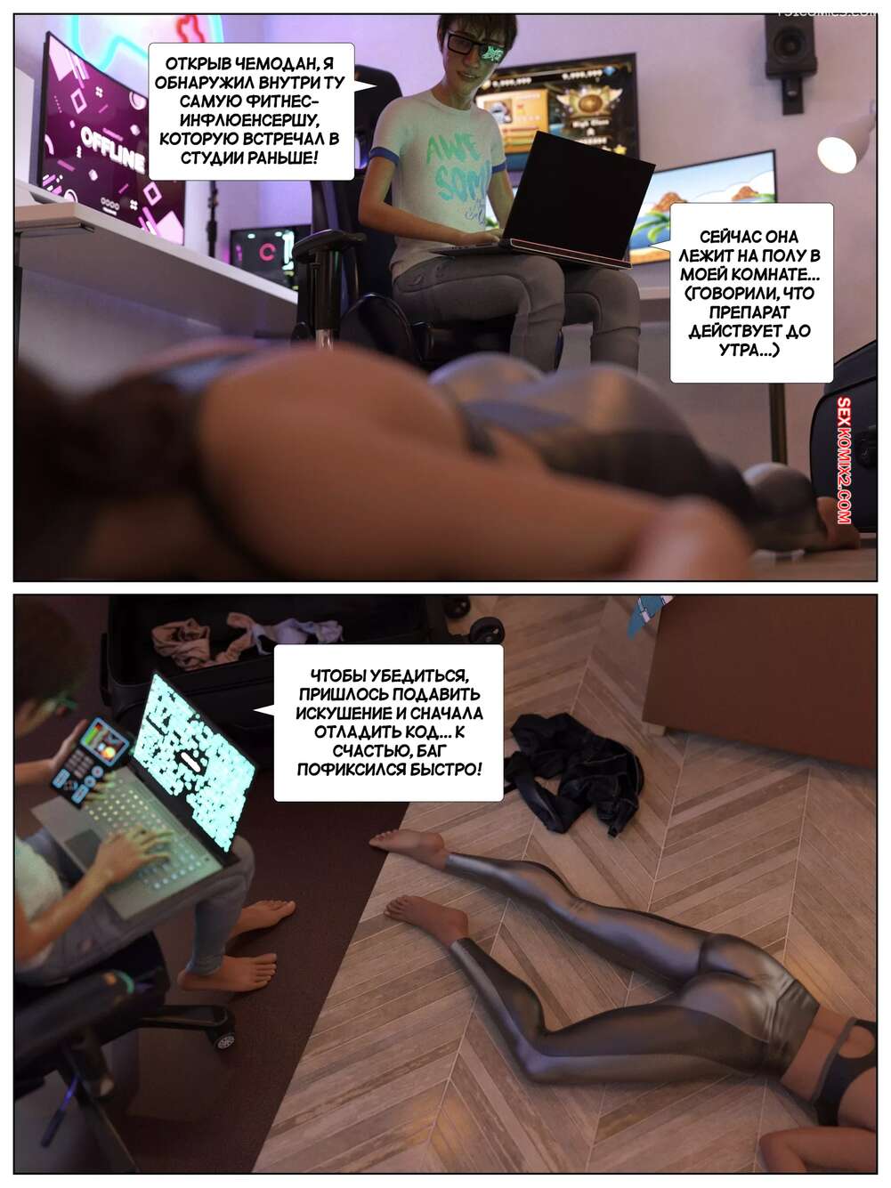 Порно комикс Нет спасения. Часть 2. No Escape. AWE SOME Ryan Горячая брюнетка уснула и парень не устоял перед ее шикарным телом. Он стал лизать красотку, после чего достал свой член, чтобы заполнить ее пизденку и оттрахать.