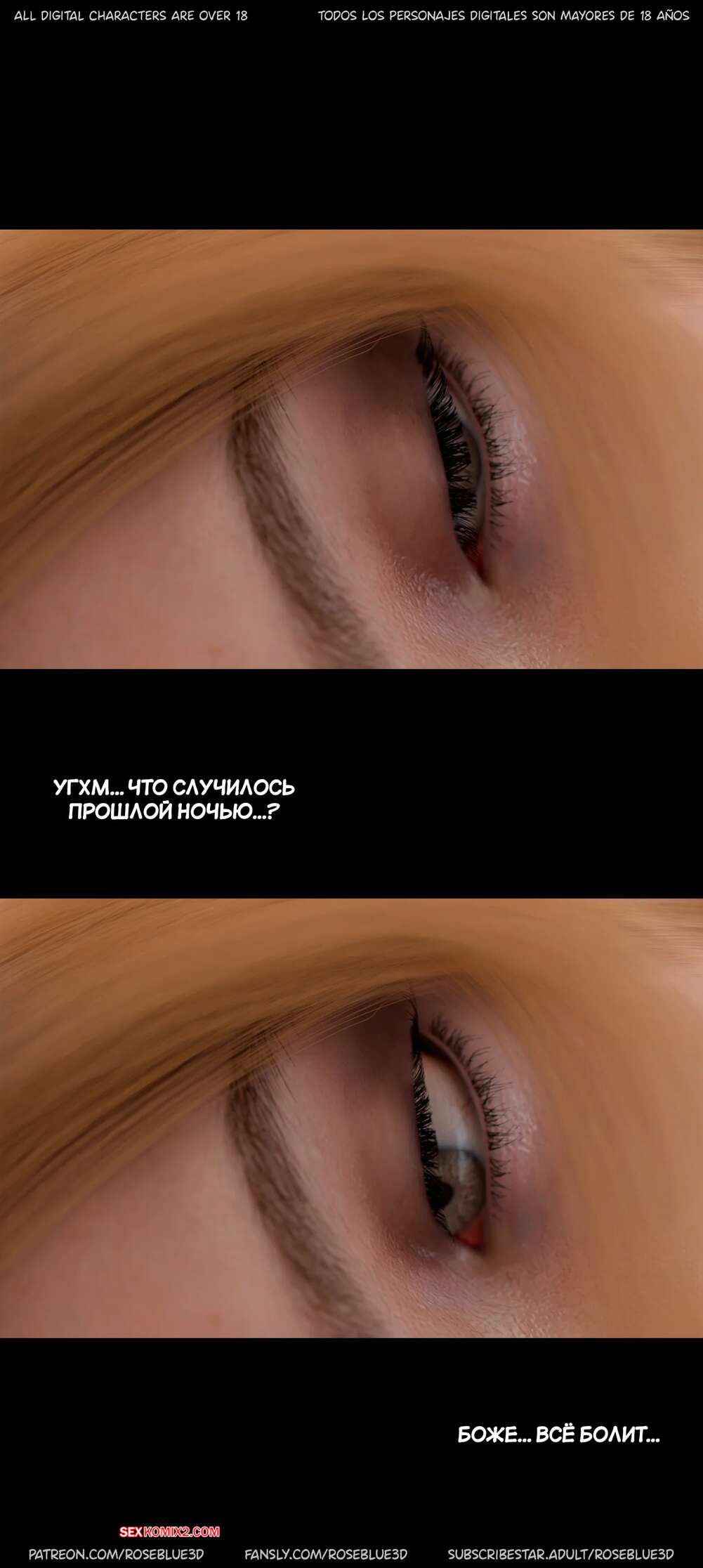 Порно комикс Моя соседская вдова. Часть 53. My Neighbors Widow. Rose Blue 3D София и Алиса проснулись голыми в квартире Софии. Красотки удивлены увидеть друг дружку без одежды и решают вспомнить что произошло прошлой ночью и как они оказались в такой ситуации.