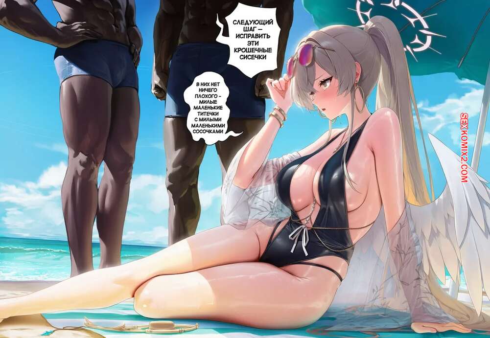 Порно комикс Первый массаж Нагисы. Nagisas First Massage. Poggerrogger. Горячая блондинка отдыхала на пляже и привлекла внимание темнокожих парней. Они стали ласкать красотку и возбудили ее, после чего дали ей отсосать свои большие хуи и выебали ее во все дырочки.