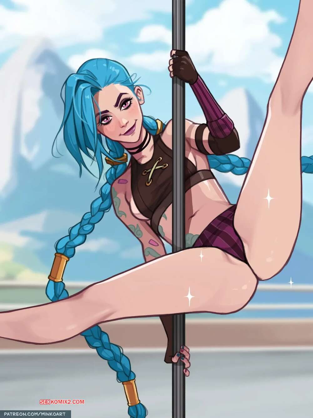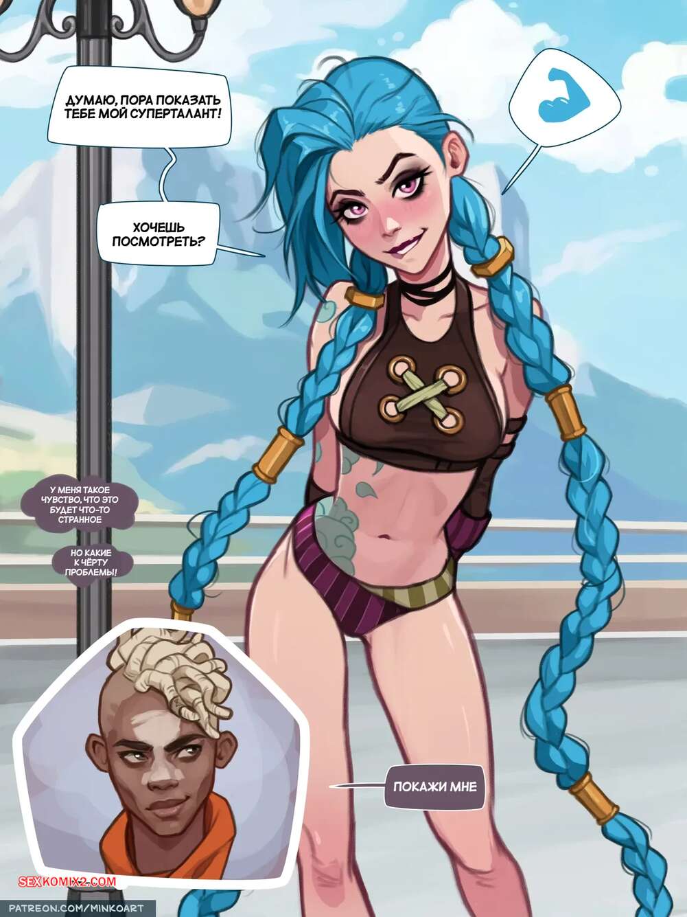 Порно комикс League Of Legends. Джинкс. Jinx. olena minko. Красотка Джинкс танцевала стриптиз для темнокожего парня и быстро вызвала у него стояк. Красотка встала на колени и взяла в ротик член парня, после чего дала ему себя выебать.