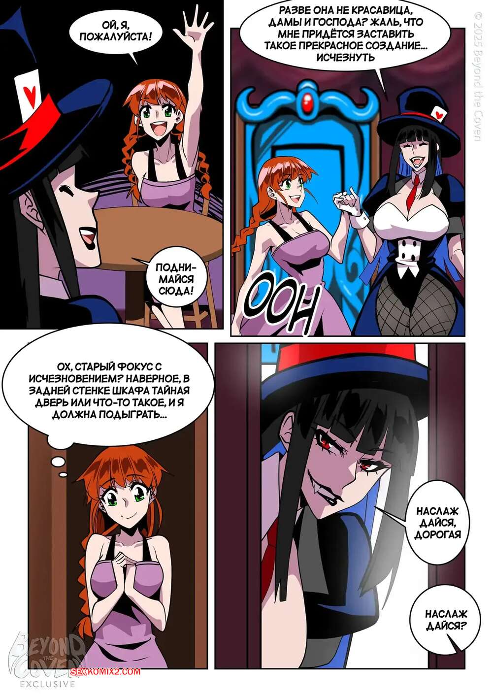 Порно комикс Ученица волшебника. The Magicians Apprentice. aya yanagisawa. Фокусница брюнетка пригласила рыжую красотку на сцену, чтобы провести номер. Она перенесла ее в другое место, где набросилась на девушку и стала ласкать ее пизду.