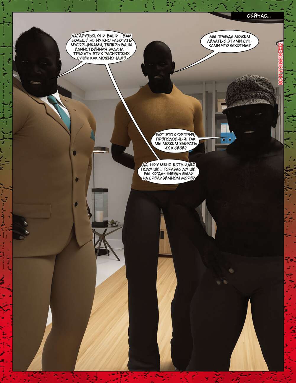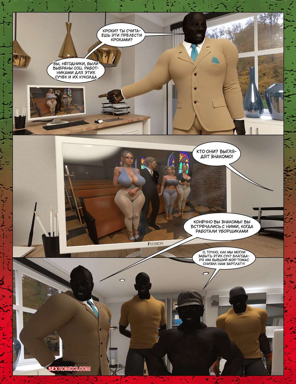 Порно комикс The Millers. Часть 7. Moiarte Похотливые сучки не могут сдерживать свою похоть перед огромными членами темнокожих парней. Сучки раздеваются и отсасывают у них, после чего раздвигают ножки и дают себя выебать.