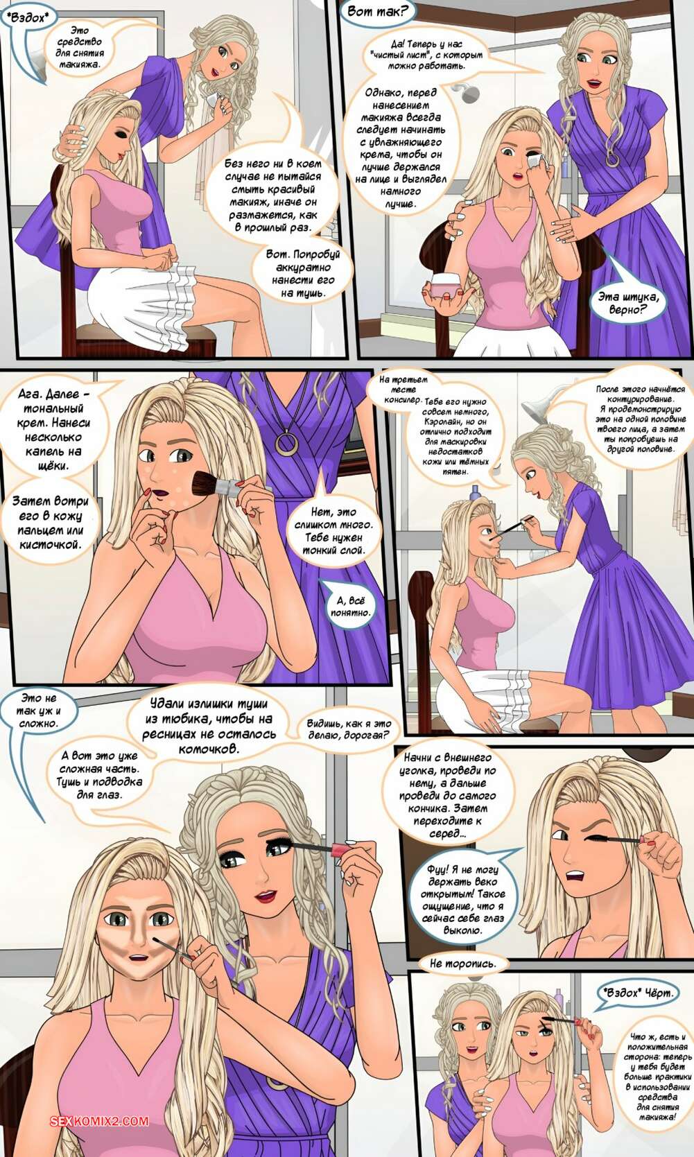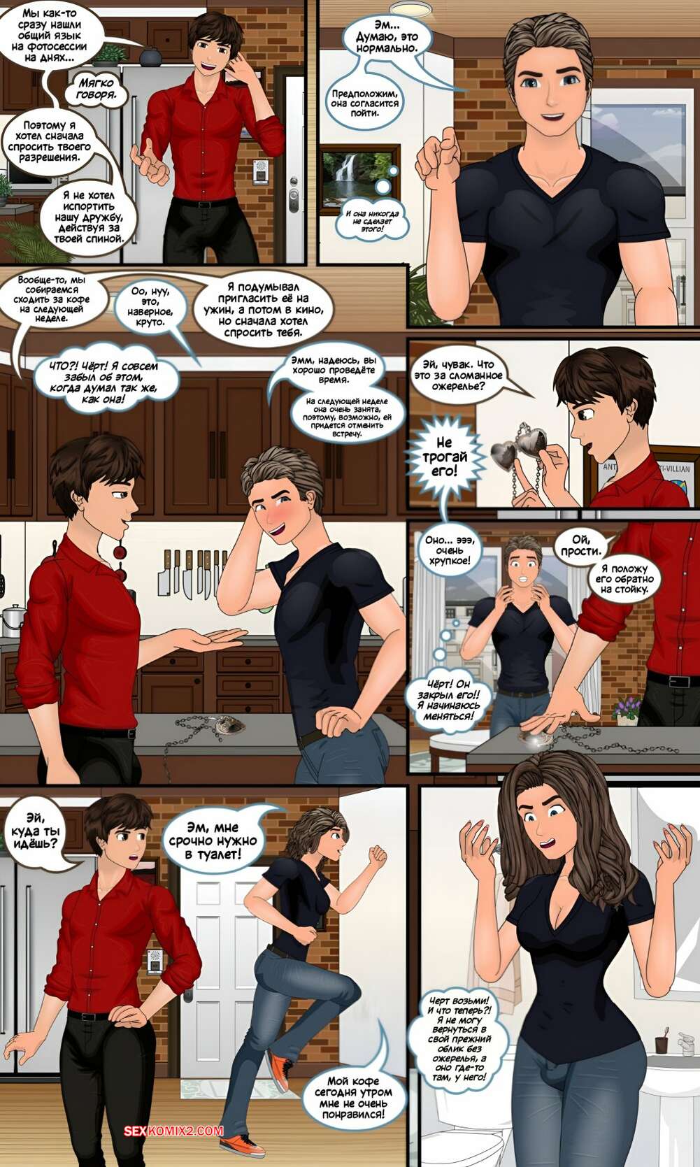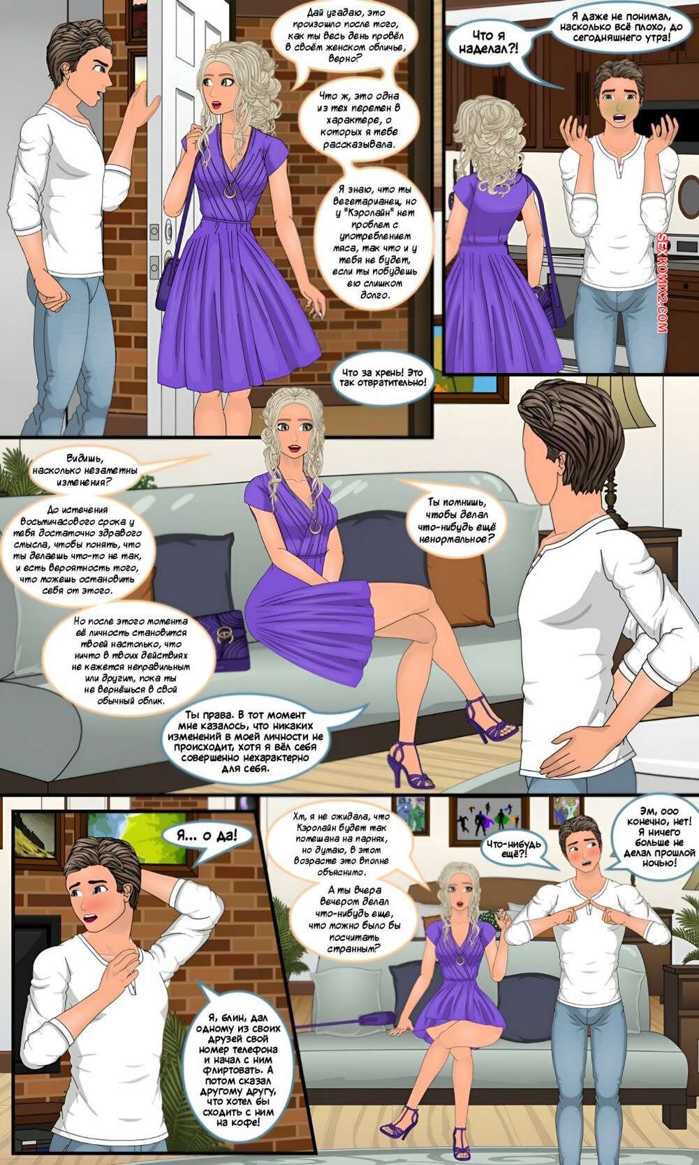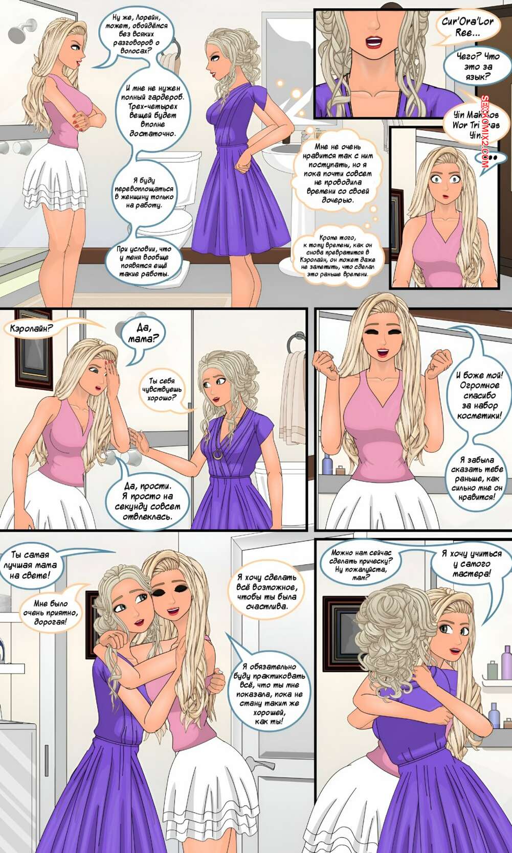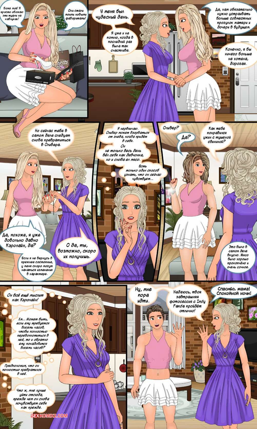 Порно комикс Godmother. Часть 4. Sapphirefoxx Парень в теле аппетитной блондинки решили прикупить себе новой одежды. Сисястая красотка отправилась в магазин, где выбрала для себя откровенные наряды, подчеркивающие ее прелести.