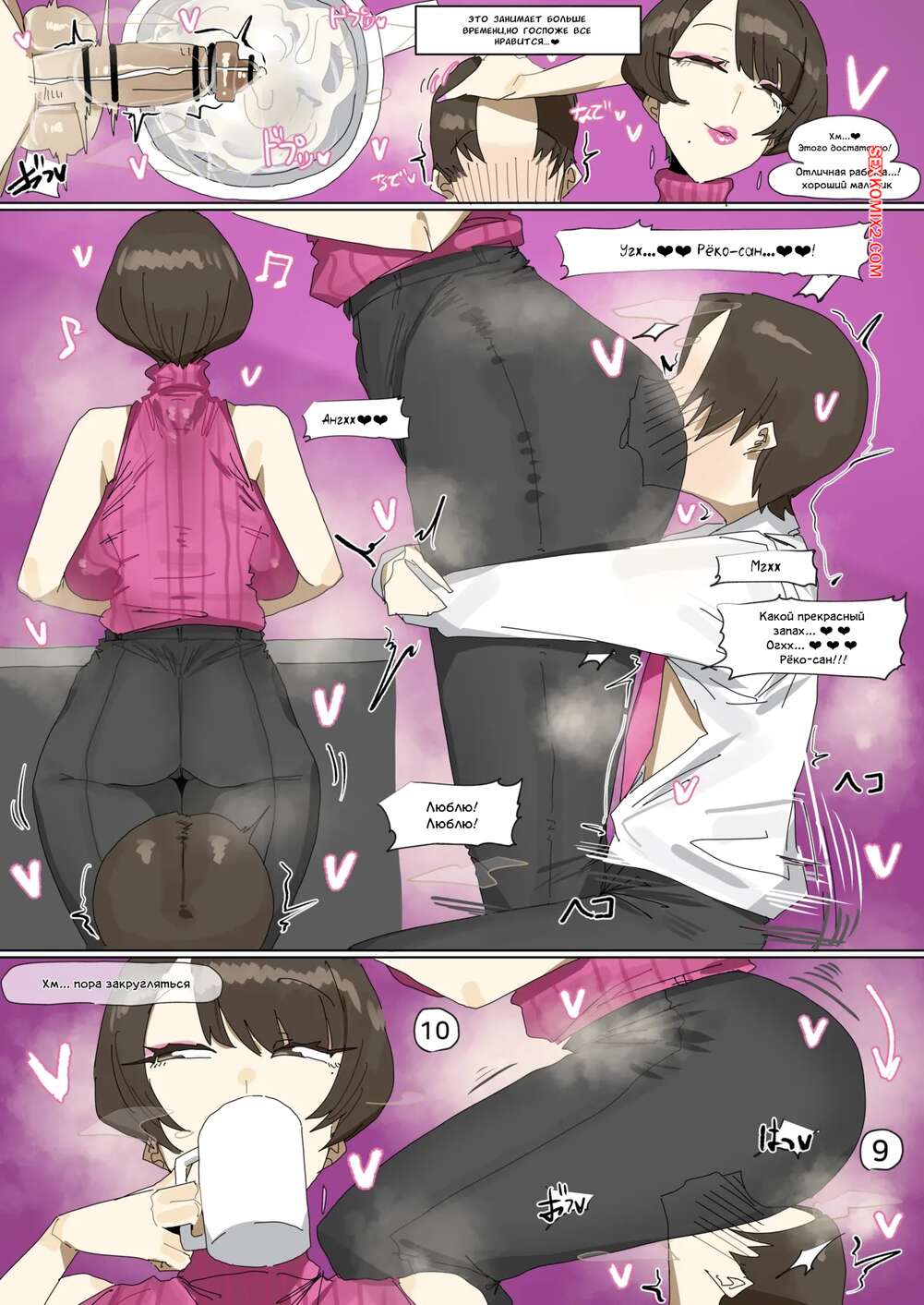 Порно комикс Босс плюс я. Leebo Похотливая милфа заигрывает со своим работником, желая пошалить. Красотка стала сосать хуй парня, после чего раздвинула ножки и дала ему выебать свою пизденку.