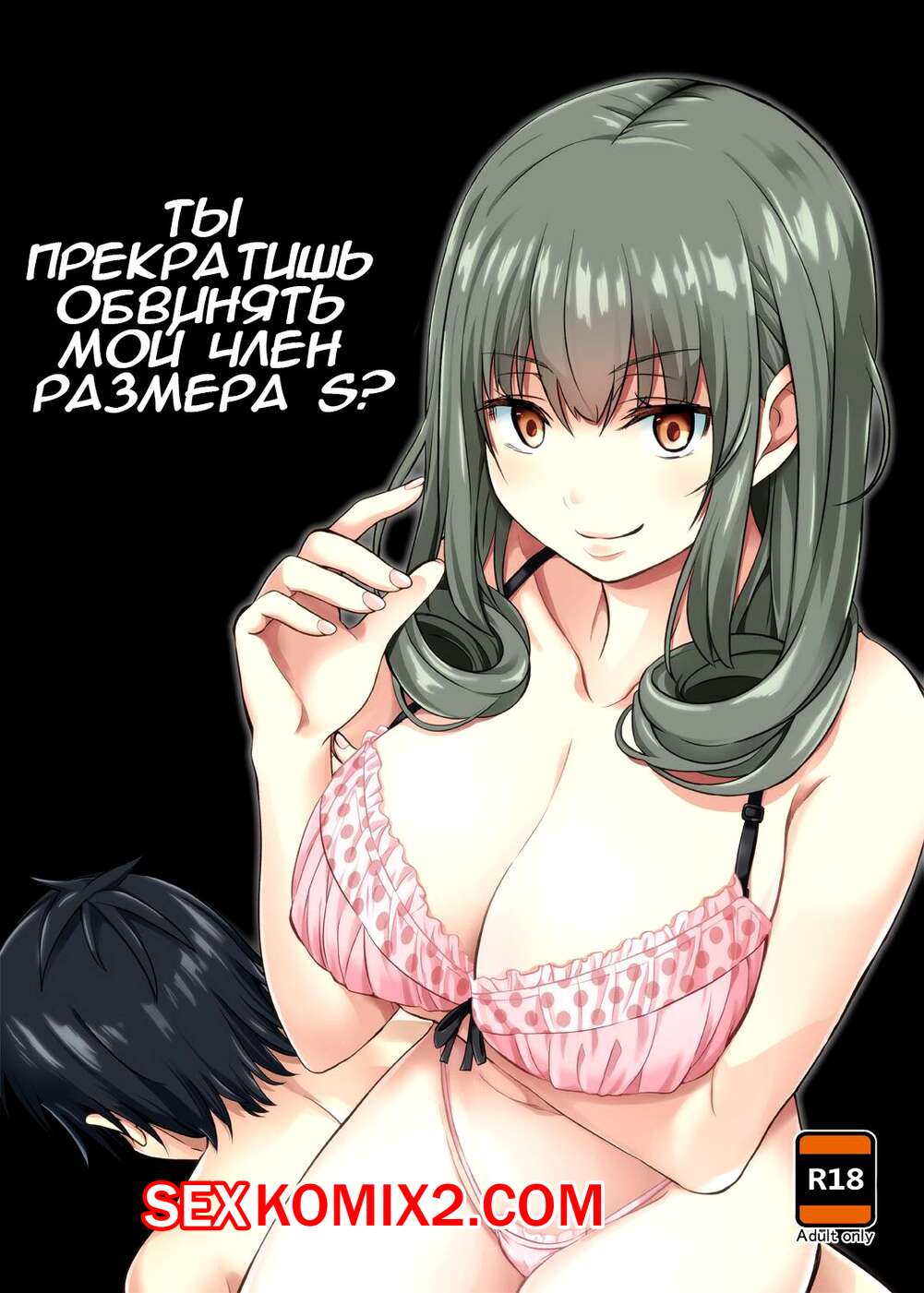 Порно комикс Перестаньте обвинять размер. DoS Kouhai no Sundome Seme Горячая сисястая красотка брюнетка чертовски возбуждена и решила повеселиться со своим дружком. Она разделась и стала сосать его большой хуй, после чего дала ему себя хорошенько выебать.
