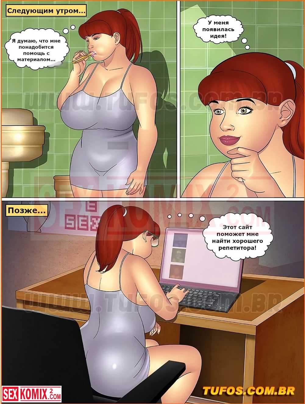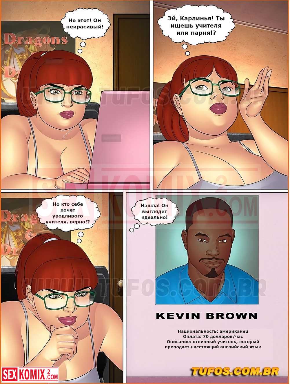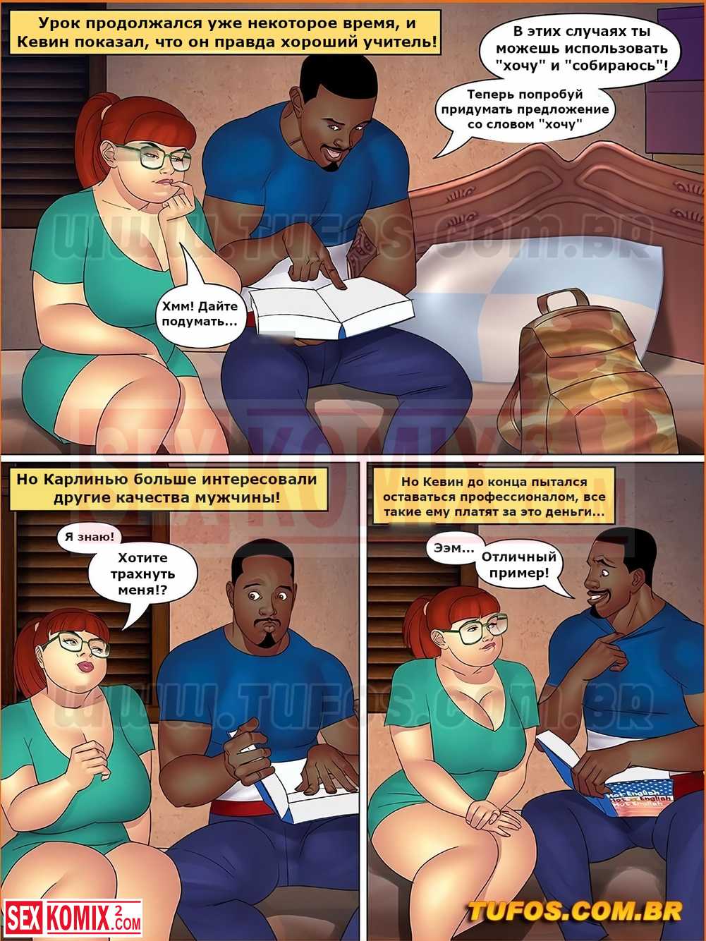 Порно комикс Тетя, кузины и племянник. Часть 11. Частные уроки. Девушка решила изучить английский язык и пригласила чернокожего учителя. Она соблазнила парня и попробовала его большой член.