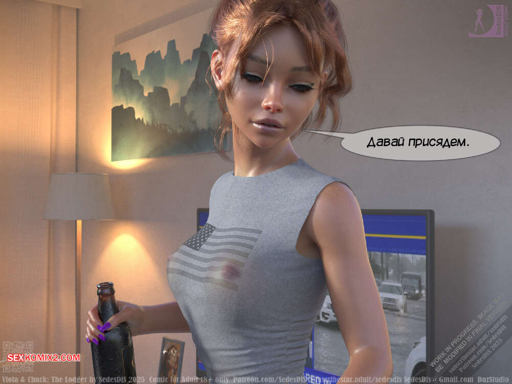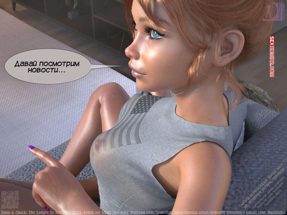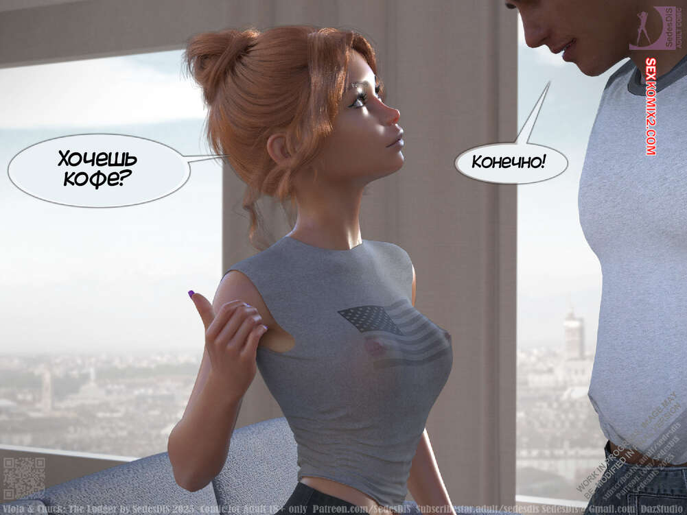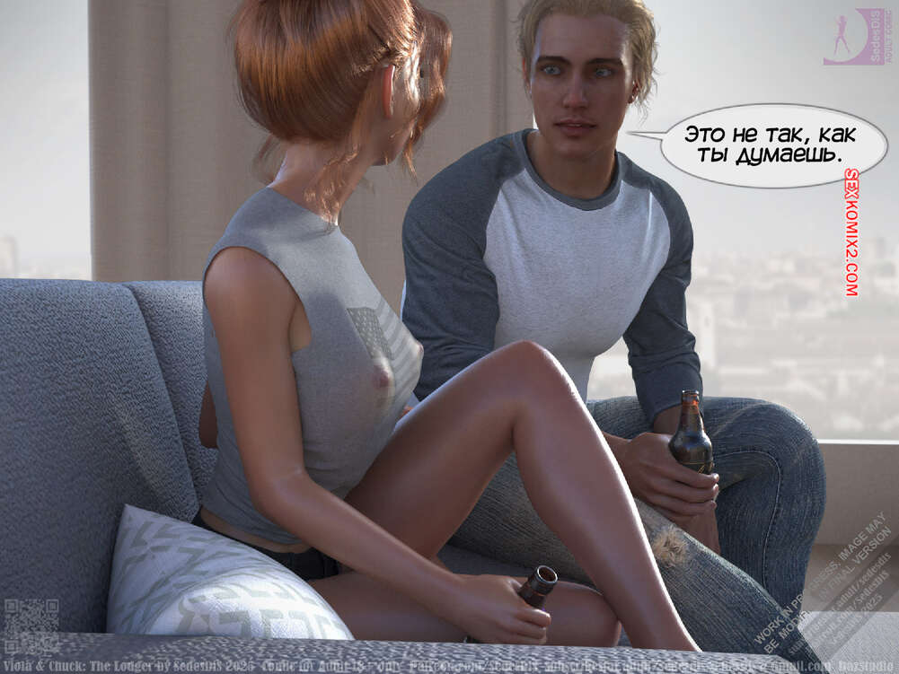 Порно комикс Виола и Чак. Жилец. Viola and Chuck. The Lodger. SedesDiS Виола живет со своим мужем и к ним на несколько дней приехал старый приятель Чака, Мартин. Мужчина познакомил любимую с другом, после чего оставил их наедине и поехал на работу.