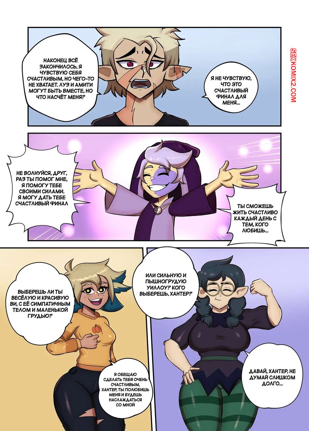 Порно комикс The Owl House. Счастливое желание Хантера. Hunters Happy Wish. J8fraph. Хантер получил возможность выбрать любую девушку, с кем он займется сексом. Немного подумав, парень выбирает Камиллу. Красотка очень рада и готова сделать все, чтобы осчастливить Хантера.