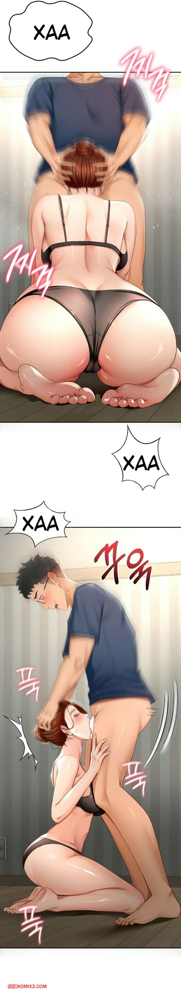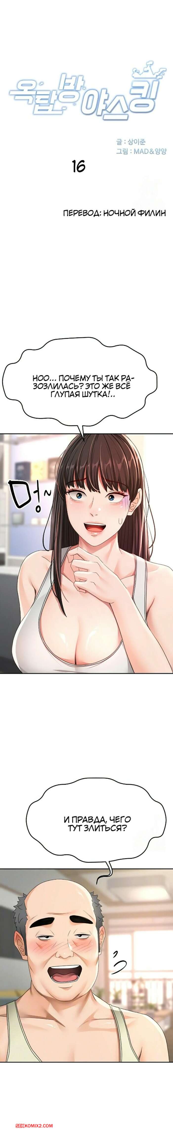 Порно комикс Король секса на крыше. Часть 16 и 17 и 18 Парнишка добивается уединения с горячей брюнеткой милфой и не может устоять перед соблазном. Он раздевает девушку и ласкает ее большие сиськи, после чего она встает на колени и отсасывает ему.