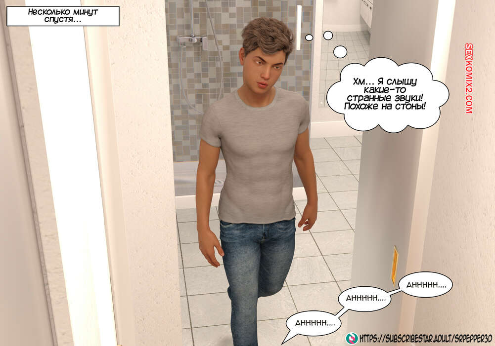 Порно комикс Как я дошла до этого. How did i end up like this. Sr Pepper Горячая милфа проснулась в хорошем настроении и полюбовалась своим сексуальным белье, которое ей подарил муж. Она пошла в ванну, но в коридоре наткнулась на своего сына и его друга.