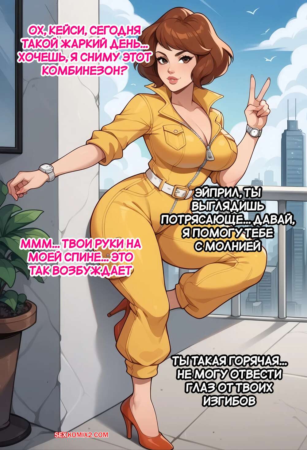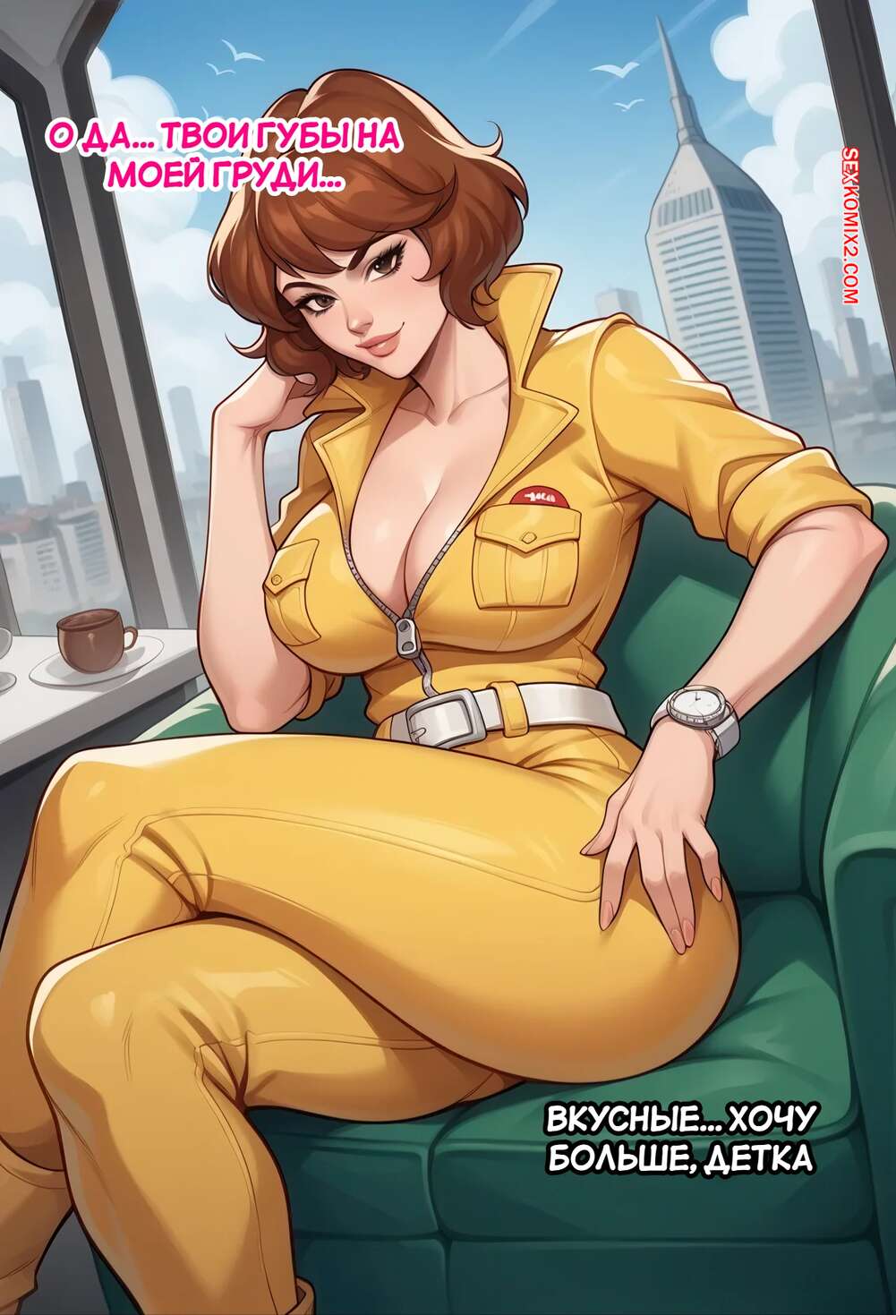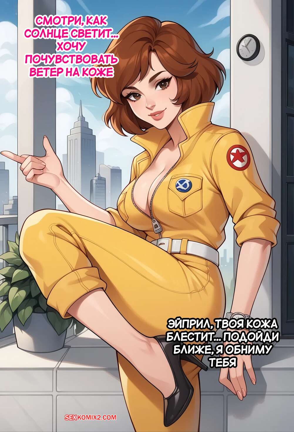 Порно комикс Черепашки Ниндзя. Эйприл О Нил. Версия с текстом. April Красотка Эйприл возбуждена и хочет трахаться. Она скидывает костюм перед своим дружком и возбуждает его, после чего дает себя выебать во все дырочки, от чего они вместе получают удовольствие.