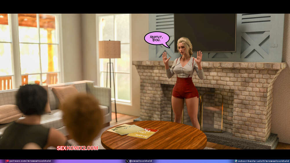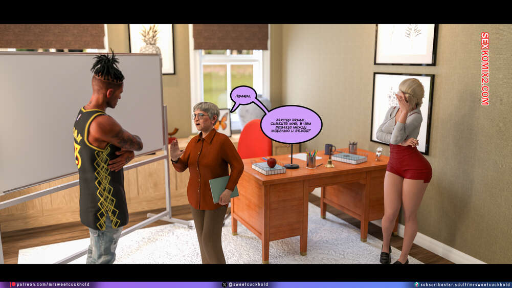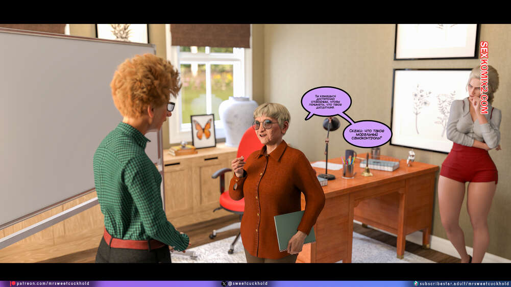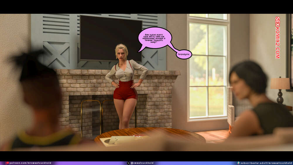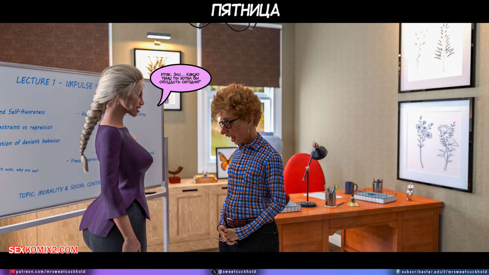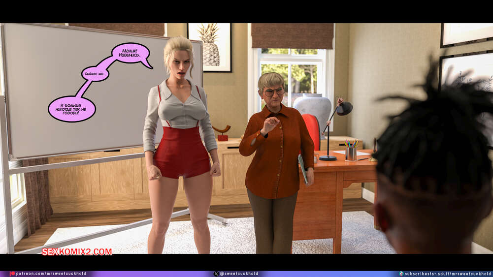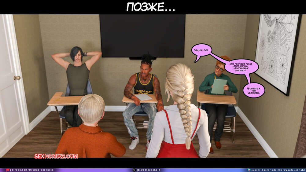 Порно комикс Программа морали. Часть 1. The Morality Program. Mr.SweetCuckhold Муж горячей блондинки болен, поэтому она выполняет задачу Ассоциации морали, чтобы получить финансирование его лечения. Домой к красотке отправили трех парней с расстройством поведения, чтобы она поставила их на правильный путь.