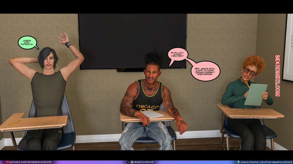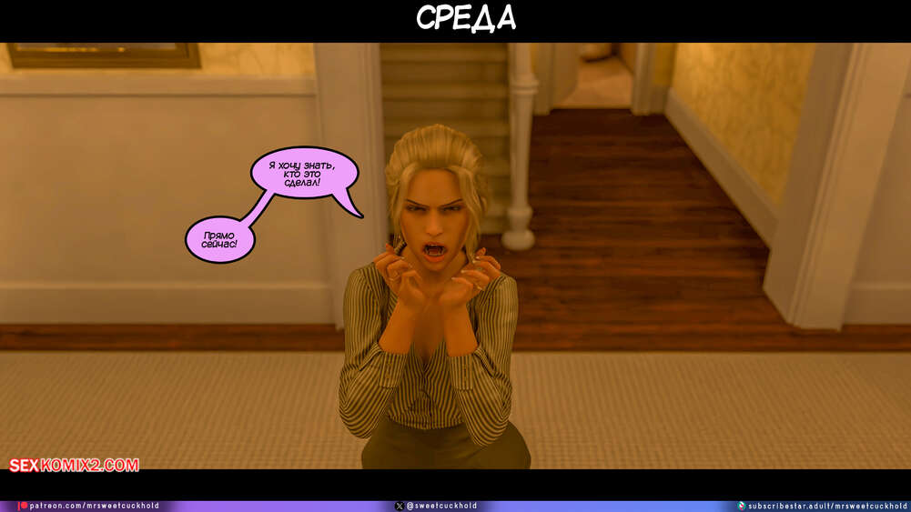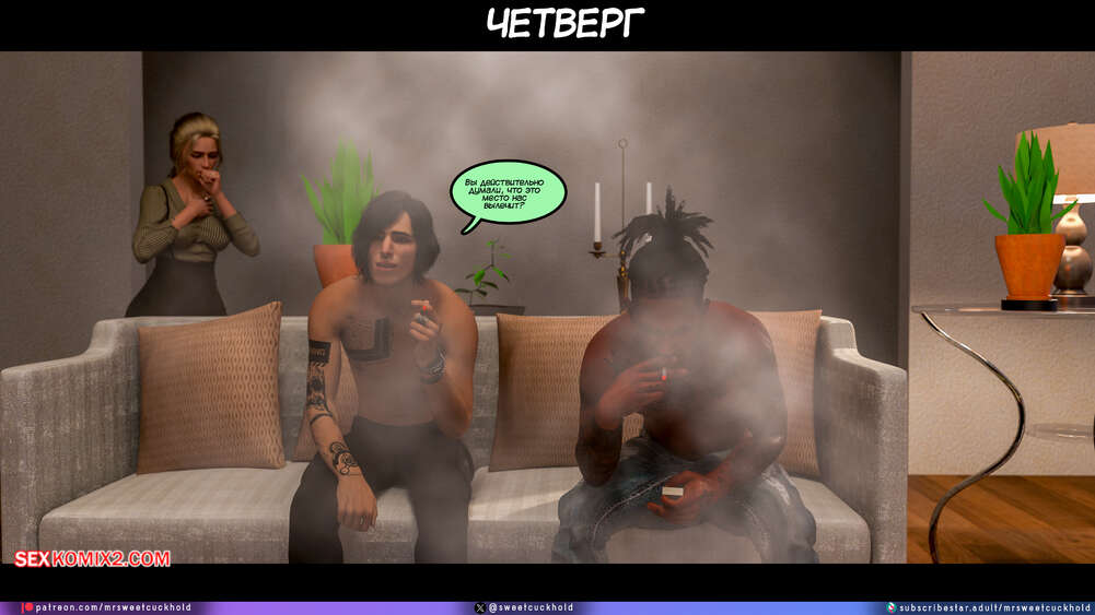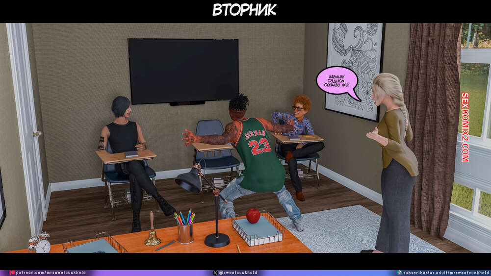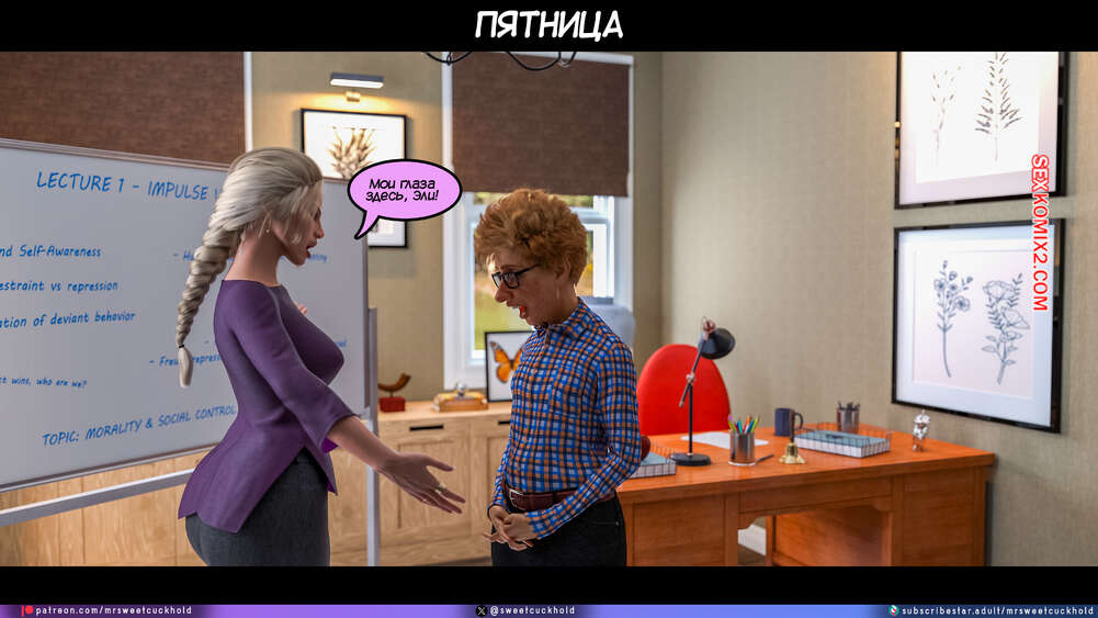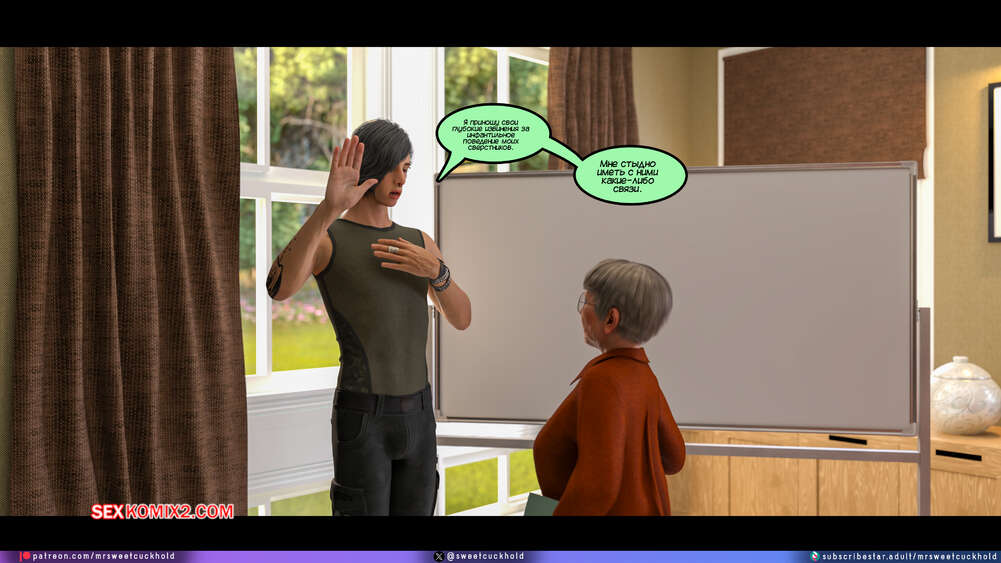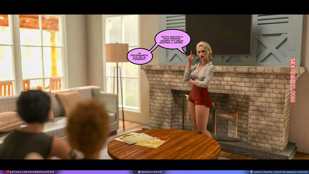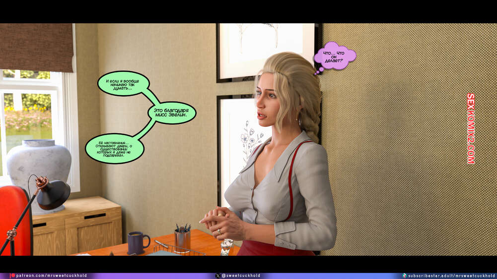 Порно комикс Программа морали. Часть 1. The Morality Program. Mr.SweetCuckhold Муж горячей блондинки болен, поэтому она выполняет задачу Ассоциации морали, чтобы получить финансирование его лечения. Домой к красотке отправили трех парней с расстройством поведения, чтобы она поставила их на правильный путь.