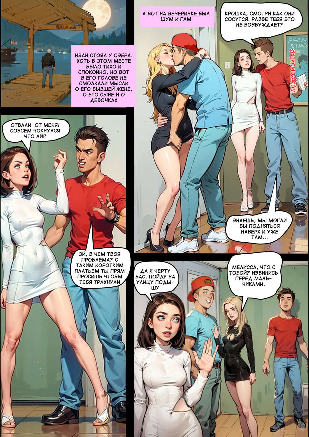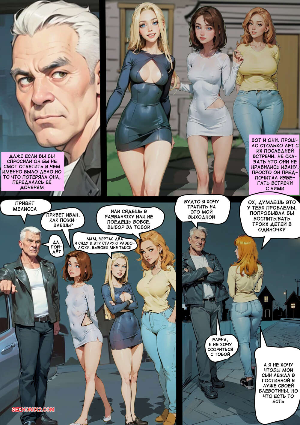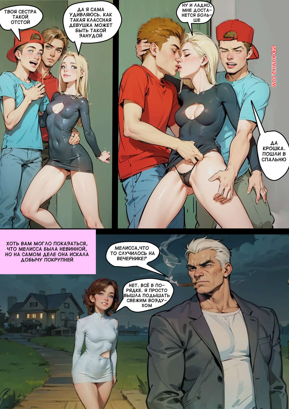 Порно комикс Большая ошибка. Very wrong. mr cookie for sexkomix2.com Ивану позвонила его бывшая жена, которая сказала, что ему нужно отвезти дочерей на вечеринку. Там блондиночка сразу привлекла внимание парней и они пошли ее трахать, а брюнеточка стала соблазнять отца.