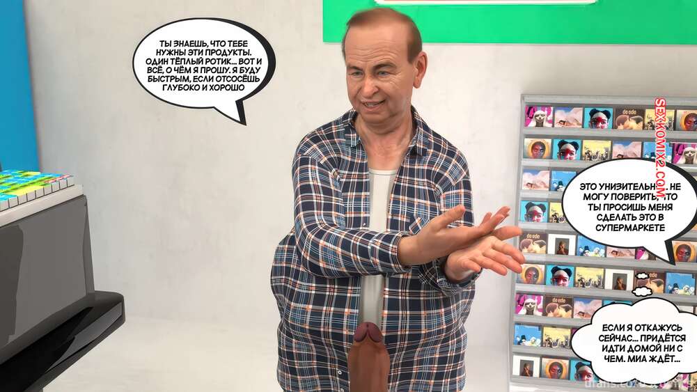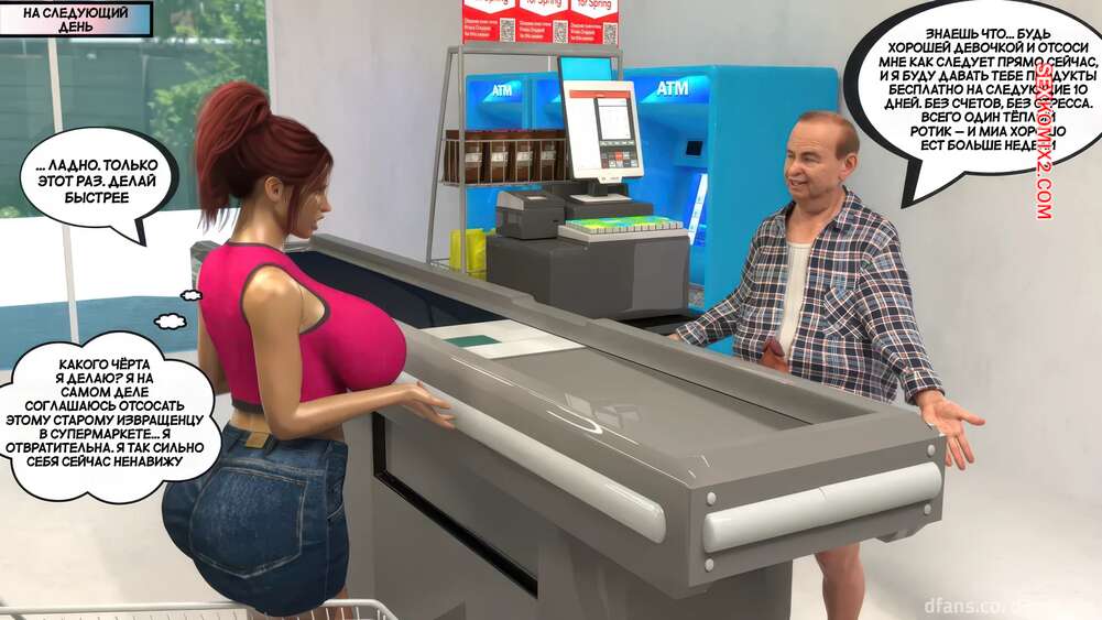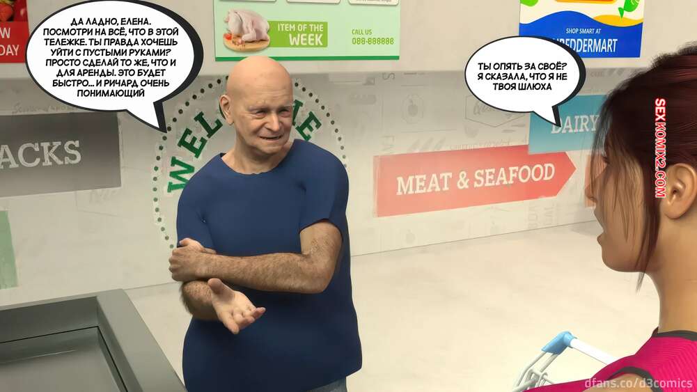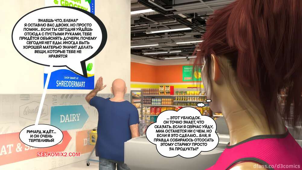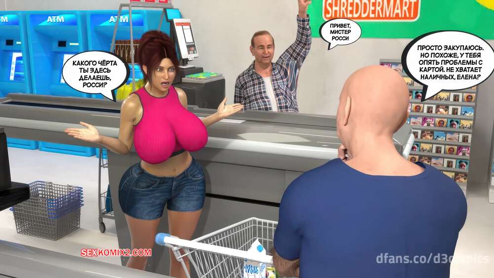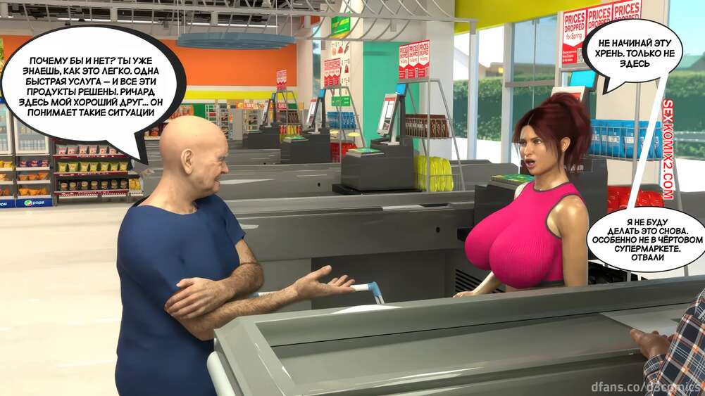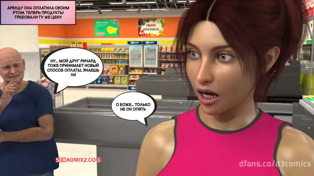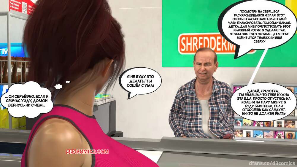 Порно комикс Новый способ оплаты. Часть 2. New Payment Method. D3 Comics Горячая милфа пришла в магазин за покупками, где старик кассир предложил ей отсосать за покупки. Сучка немного помялась, но в итоге встала на колени и взяла в рот его хуй.