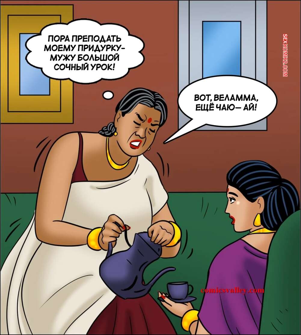 Порно комикс Веламма. Часть 116. Velamma. Velamma Красотка Веламма встретилась со своей подругой и они решили пошалить. Милфы разделись и стали ласкать друг дружку, после чего к ним присоединился муж Веламмы и выебал сучек.