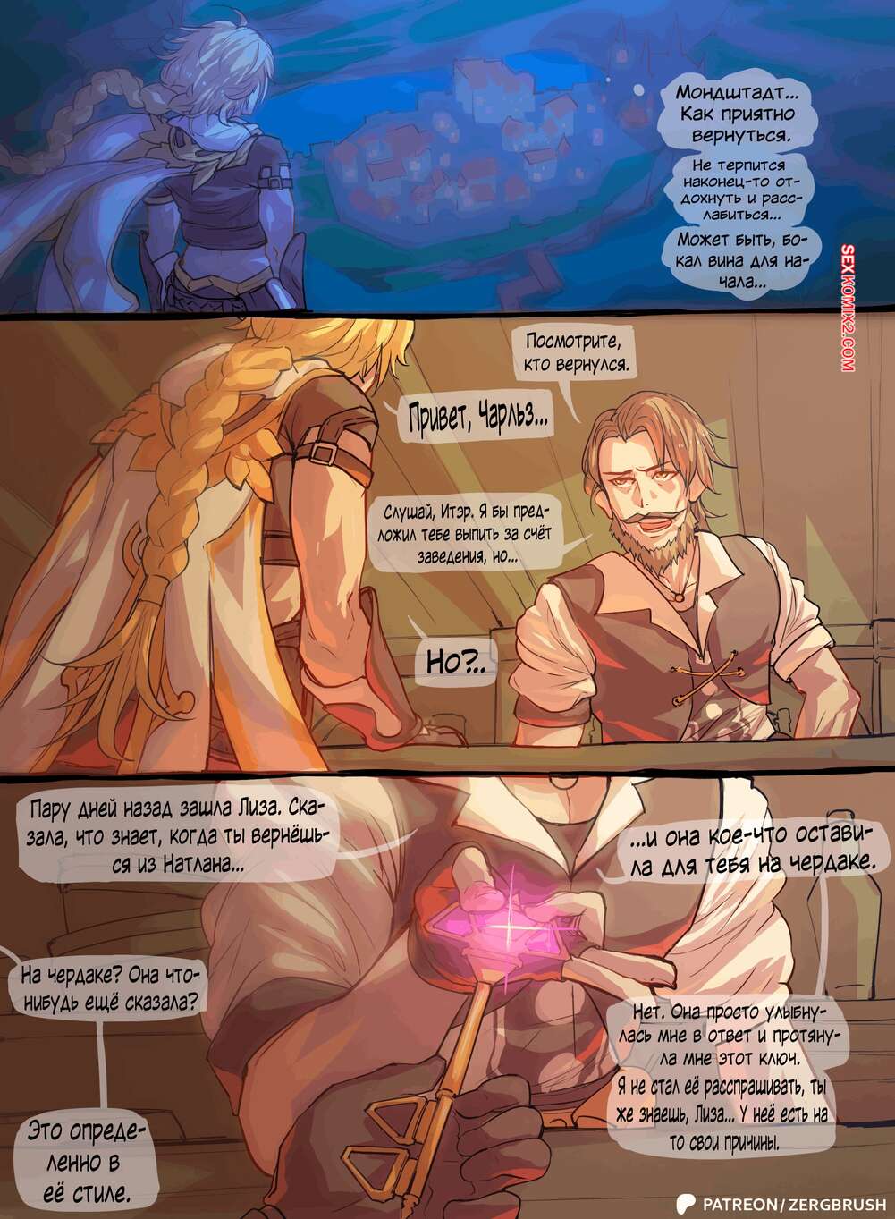 Порно комикс Genshin Impact. Маленький сюрприз Лизы. Lisas Little Surprise. Zergbrush Красотки разделись перед своим дружком, желая устроить групповуху. Девушки стали вместе сосать большой член возбужденного парня, после чего раздвинули ножки и дали себя выебать.