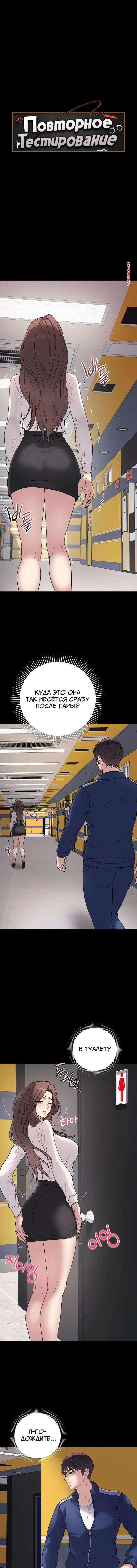 Порно комикс Повторное тестирование. Часть 4 и 5 и 6. Signed Sealed Mistaken Парень привел горячую училку в туалет, желая там с ней повеселиться. Он стал ласкать сиськи красотки и возбудил ее, после чего сунул ей в ротик свой член, чтобы она ему отсосала.