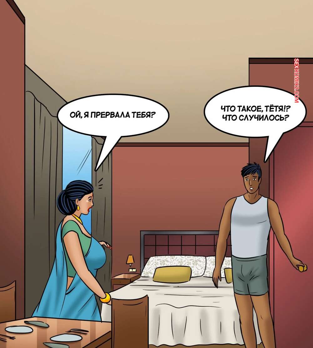 Порно комикс Веламма. Часть 118. Velamma. Velamma Красотка Веламма соблазняет молодого парня, желая с ним пошалить. Красотка разделась и вызвала у парня каменный стояк, после чего раздвинула ножки и дала себя выебать.