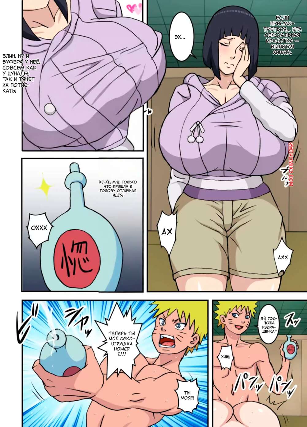 Порно комикс Наруто. ТороЦуна 2. Свиток о пришествии Принцессы Бьякугана из будущего. Naruhodo Красотка Хината вернулась в прошлое и застала Наруто за еблей с Цунаде. Девушка поспешила раздеться и стала сама сосать хуй парня, после чего они устроили групповуху.
