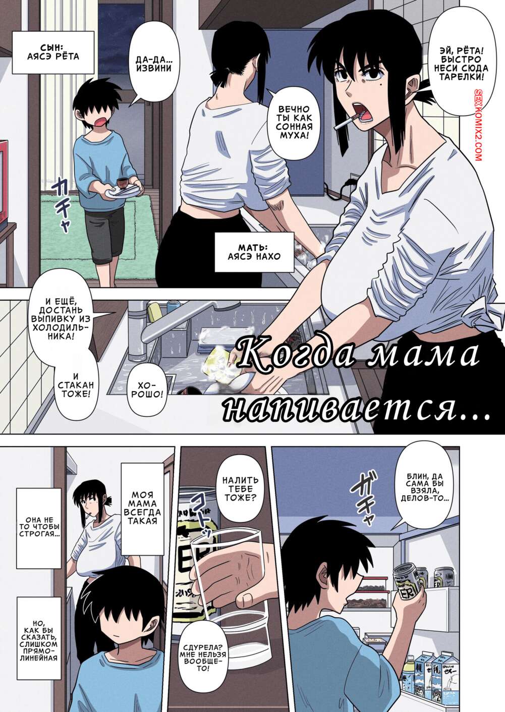 Порно комикс Когда мама напивается. When Mom Gets Drunk. Gin Eiji Горячая милфа напилась и решила повеселиться со своим сыном. Красотка пришла в комнату к парню и разделась перед ним, после чего раздвинула ножки и дала себя выебать.