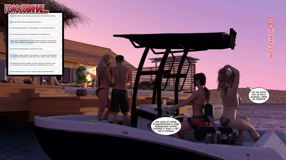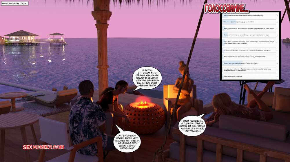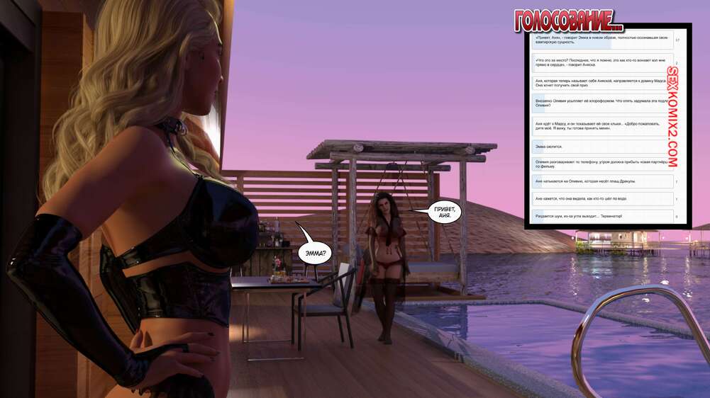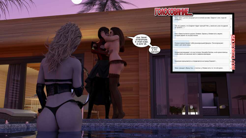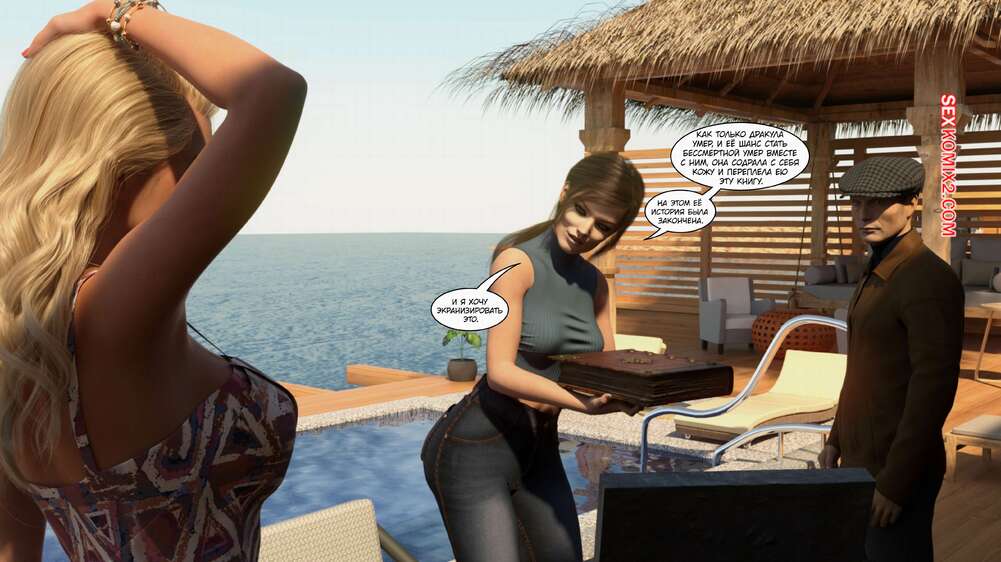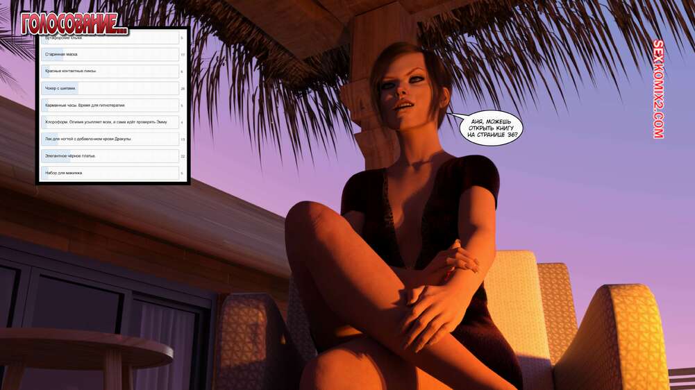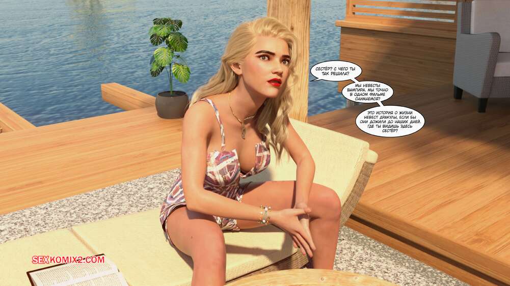 Порно комикс Время вампиров. Часть 1. Bite. Cantraps Горячая брюнетка отдыхала на курорте и почувствовала сильное возбуждение. Девушка разделась и стала ласкать свою пизденку, получая невероятное удовольствие, но вскоре ее прервали.