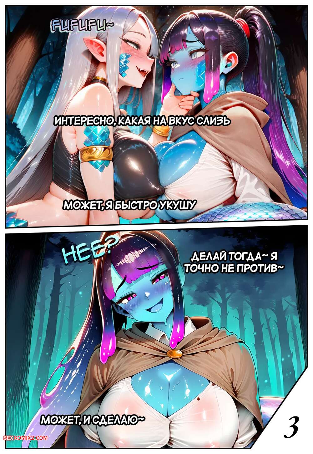 Порно комикс Истоки слизи. Часть 3. Slimy Origins.ExLa4. Горячая блондинка встретила в лесу девушку из слизи и решила с ней пошалить. Красотка выставила напоказ свои большие сиськи, после чего стала страстно целовать брюнеточку.