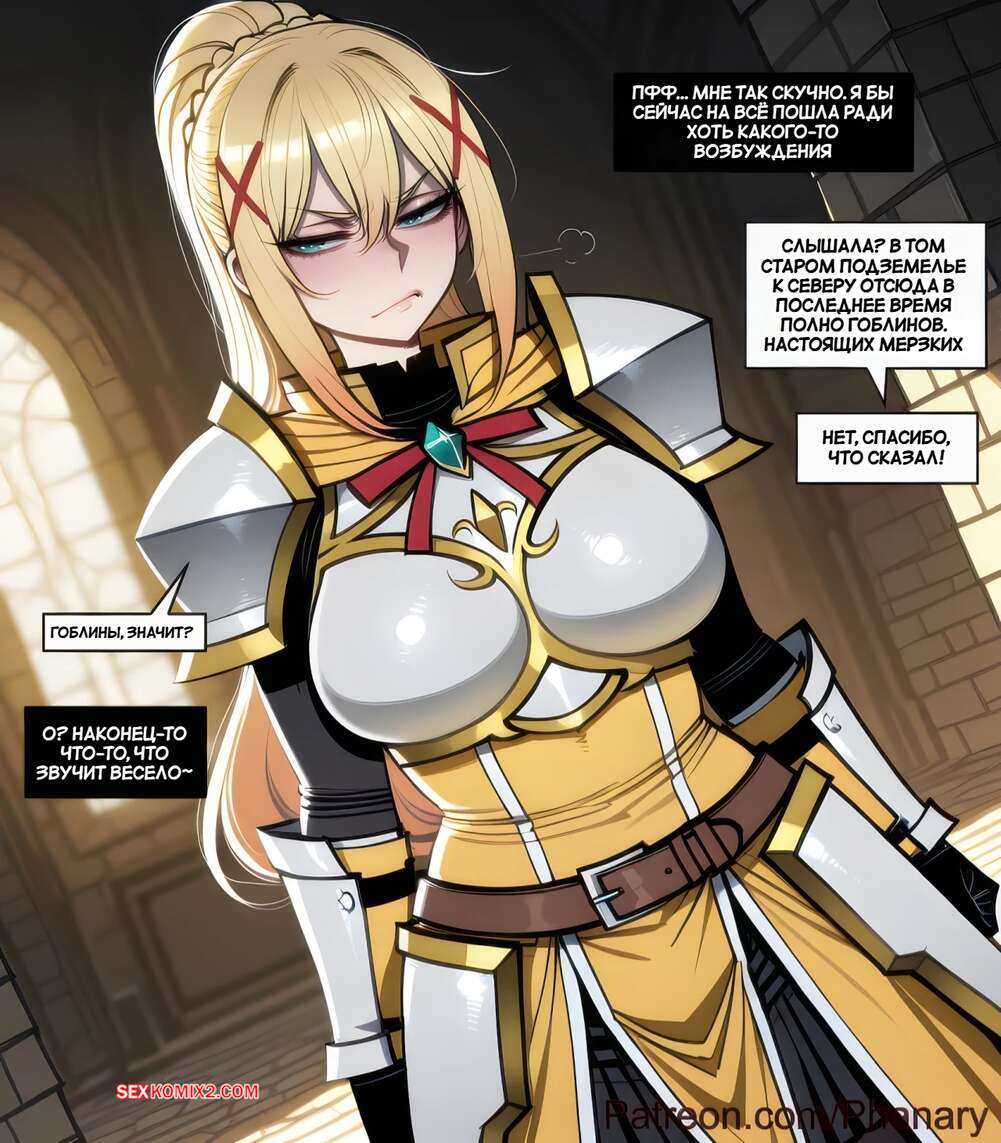 Порно комикс Даркнесс и Мегумин. Darkness x Megumin. Phanary. Горячая блондинка привлекла внимание гоблинов, которые решили насладиться телом девушки. Они раздели сучку и дали отсосать свои большие хуи, после чего выебали ее во все дырочки.